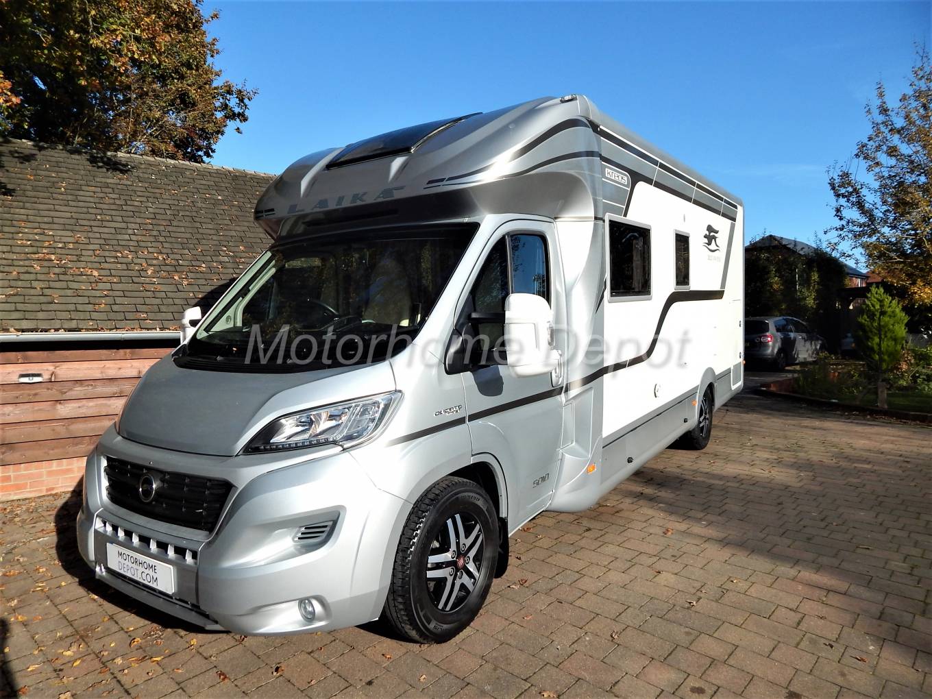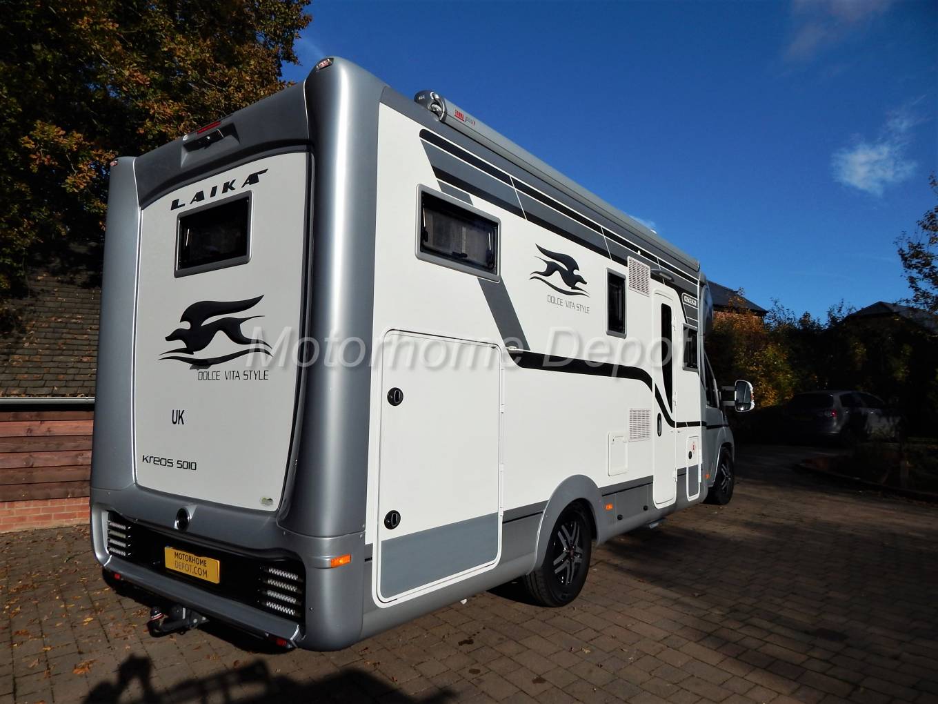 From out under the Hymer umbrella comes this less well known make of quality Motorhomes Laika, this model being the Kreos 5010 with Duca Vita Pack. Laika are built in their own bespoke factory in Tuscany and are passionate about producing quality motorhomes which is evident in abundance in this one. Based on the ever popular Fiat Ducato chassis this variant of the 2.3D is 150BHP Euro 6 emissions Comformatic 6 Speed Automatic Gearbox with the uprated heavy chassis plated at 4250KG. It has only had two owners from new covering 7439 miles it has been maintained by Southdowns in Portsmouth for its Habitational requirements & Adams Morey Fiat for mechanical services.