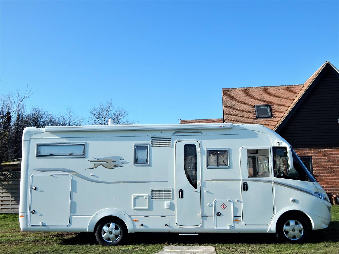 2012 model facelifted version of the Laika Kreos 7009, based on a Fiat Ducato cab with a 3.0 180BHP Turbo Diesel engine and Comformatic 6 Speed automatic gearbox. Upgraded heavy chassis plated at 4250kg. Luxury Pack including: Drivers & passengers air bag; uprated alternator; alarm system, cab air conditioning; cruise control. This vehicle has had one owner from new and has been lovingly maintained by Southdowns the Laika main dealer in Portsmouth with no expense spared. Recent Habitation check.
