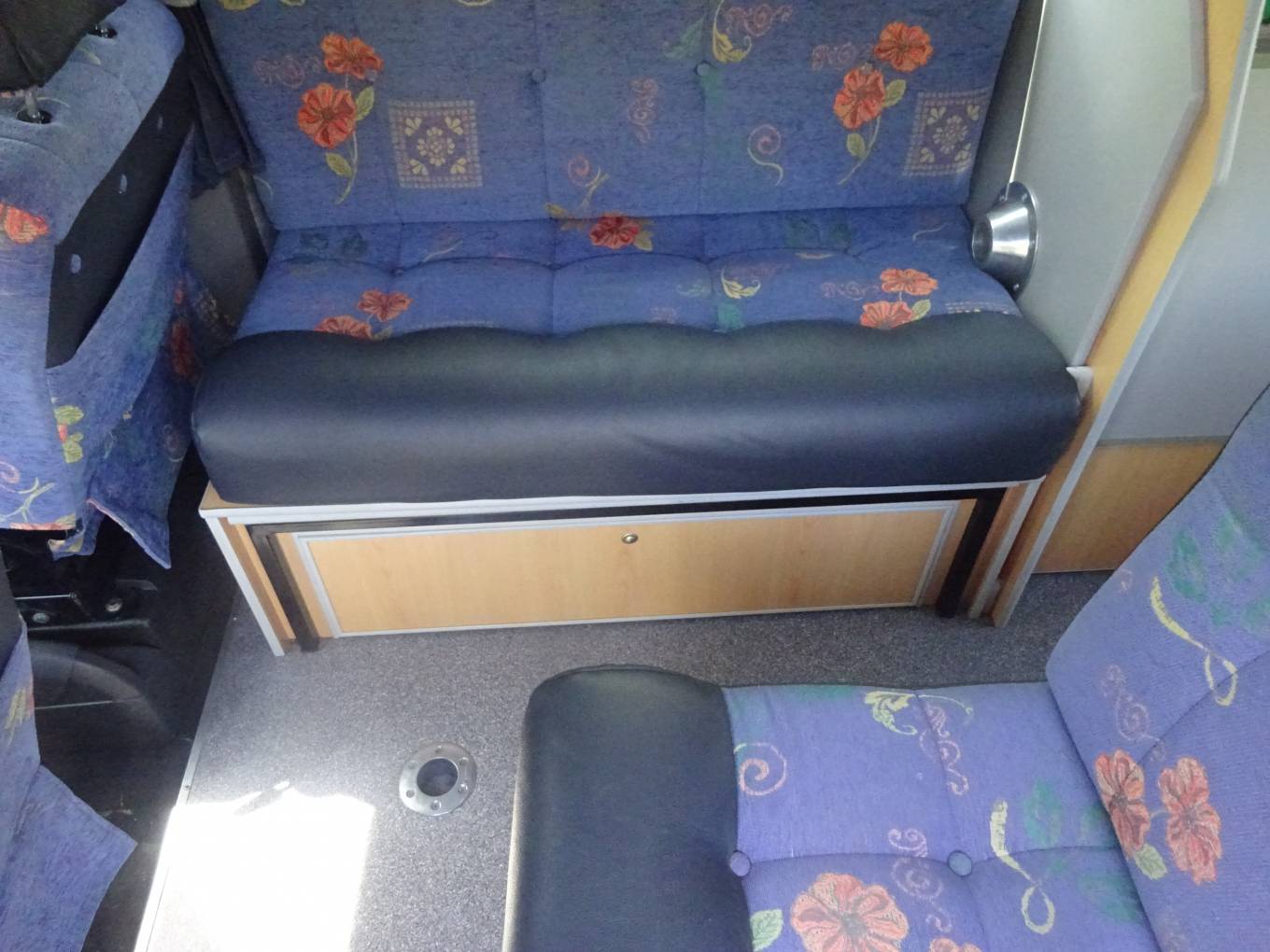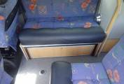 2 berths, 3, three-point seat belts. There is ample stowage and storage space throughout. The passenger cab seat swivels to enable a social space for four, in comfort, and there is a pedestal table for dining and board games.