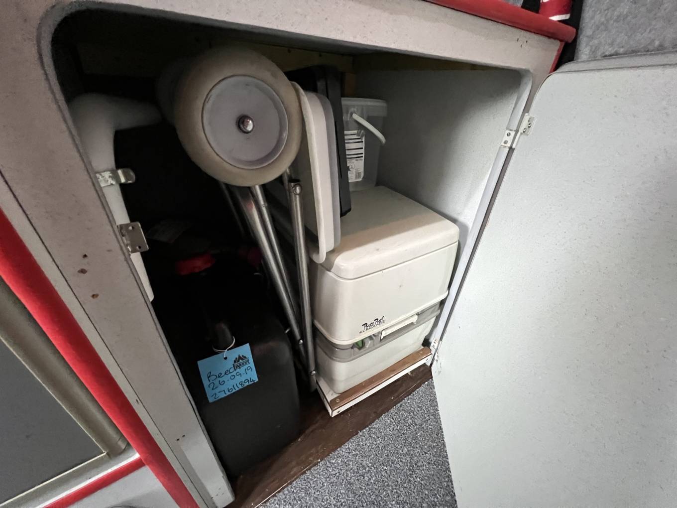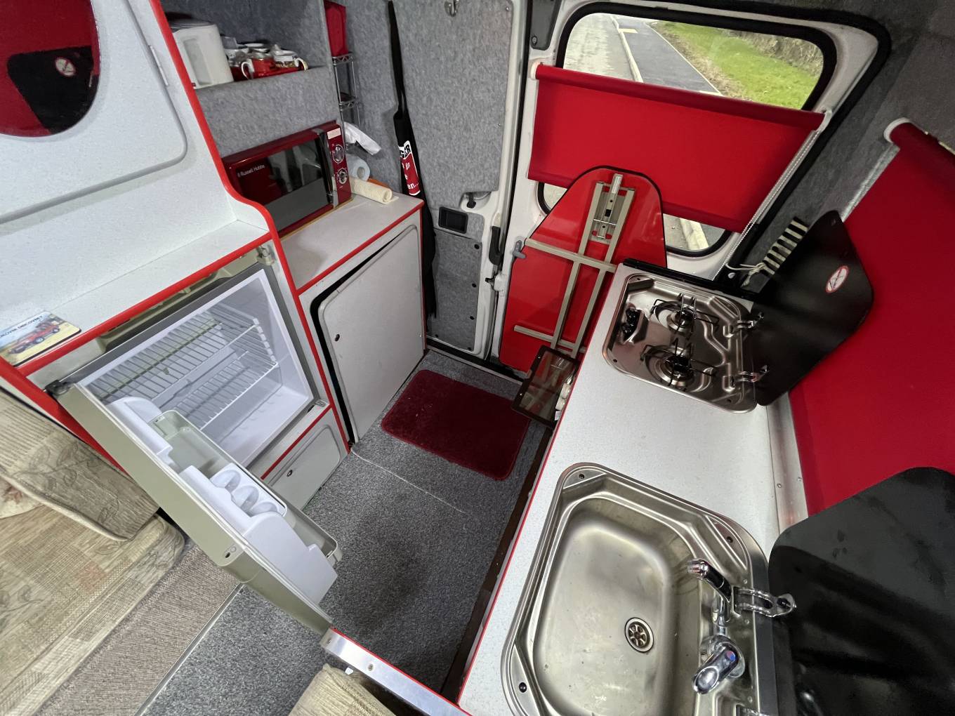 In the rear on one side you will find a two burner hob, a mini oven and grill, a sink with a cold water tap and plenty of cupboards.