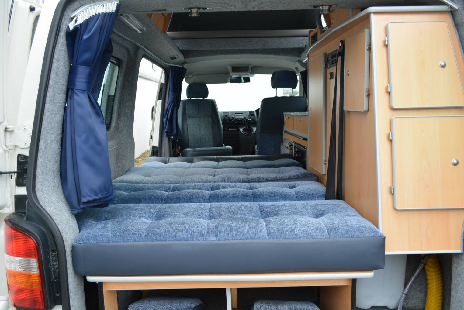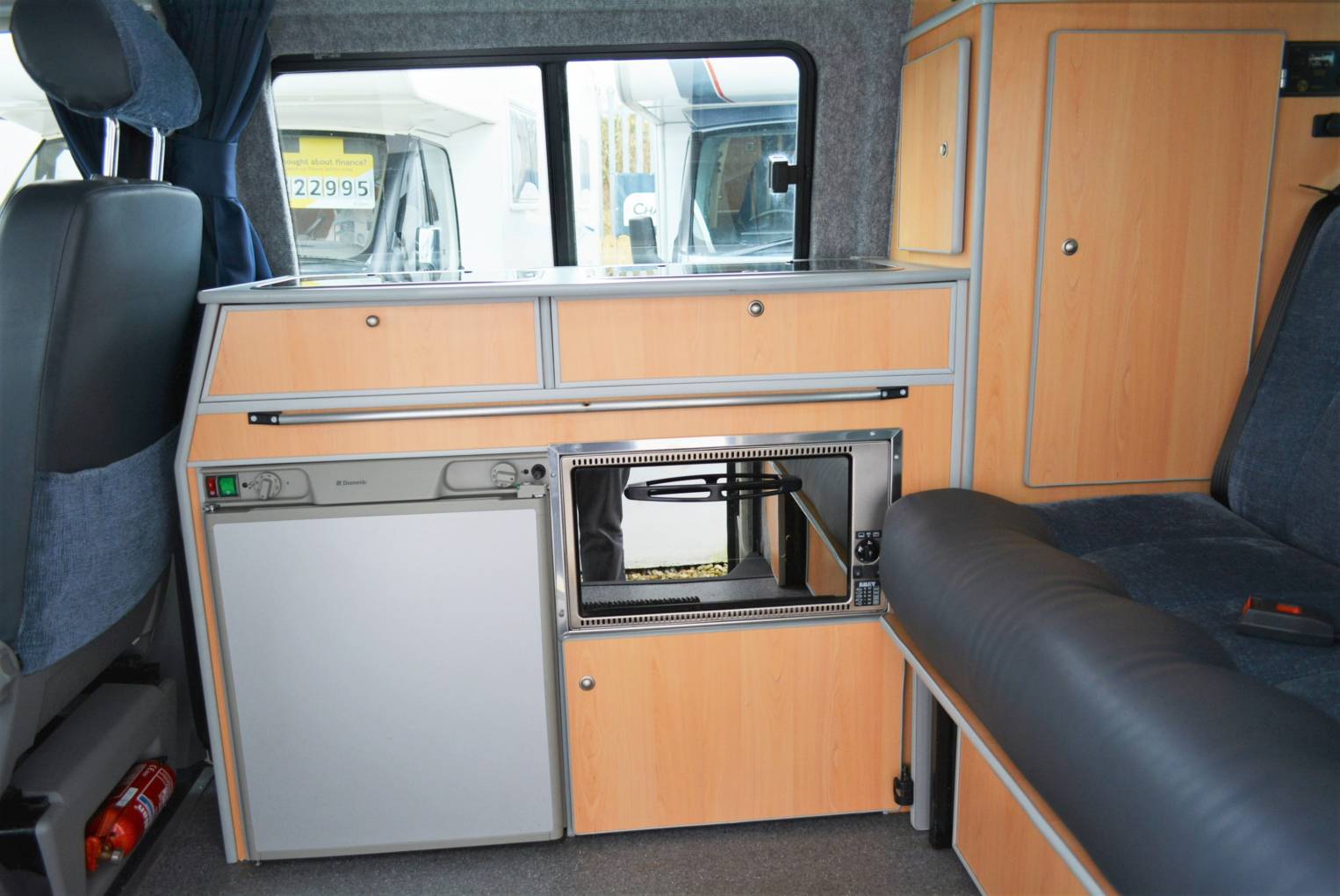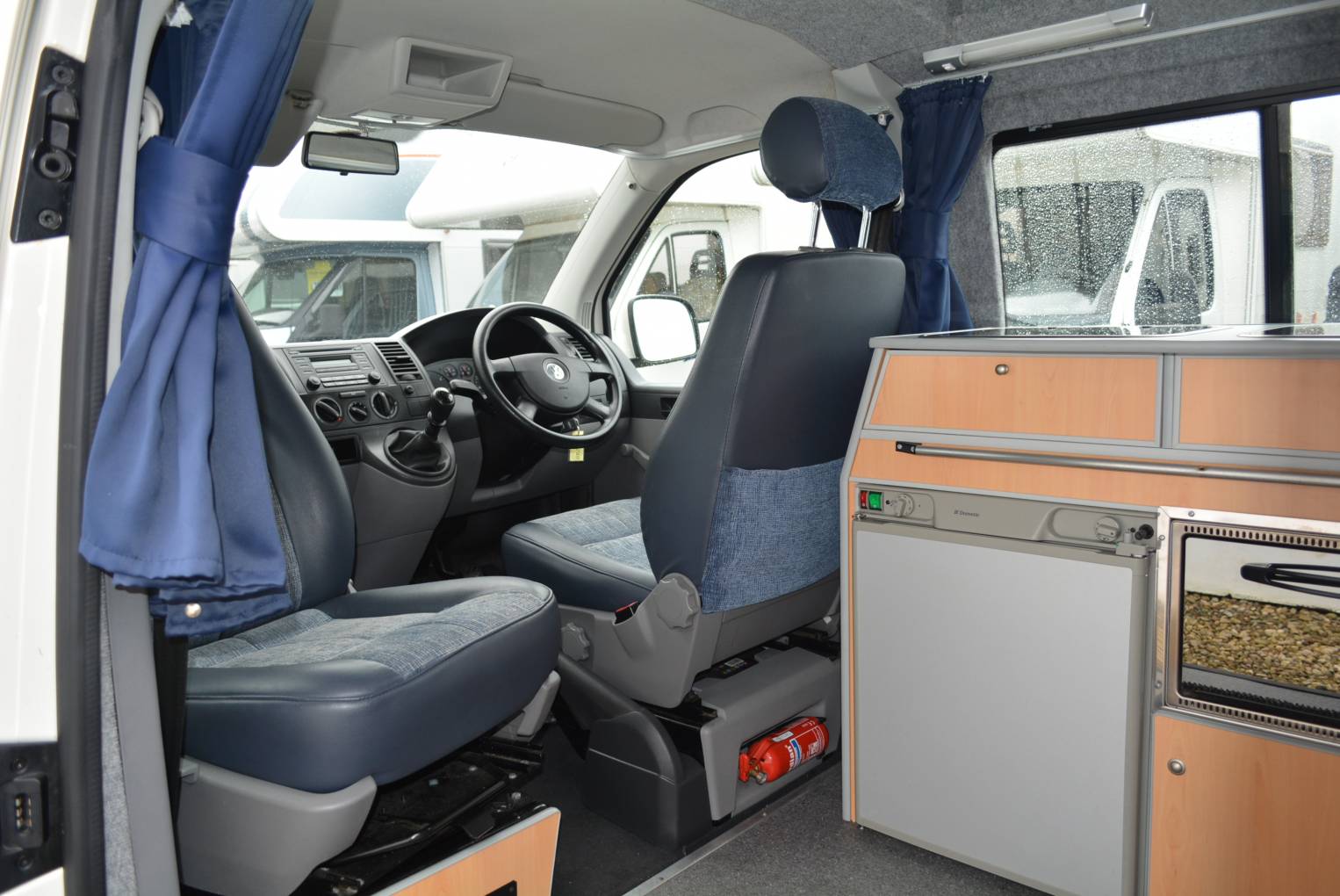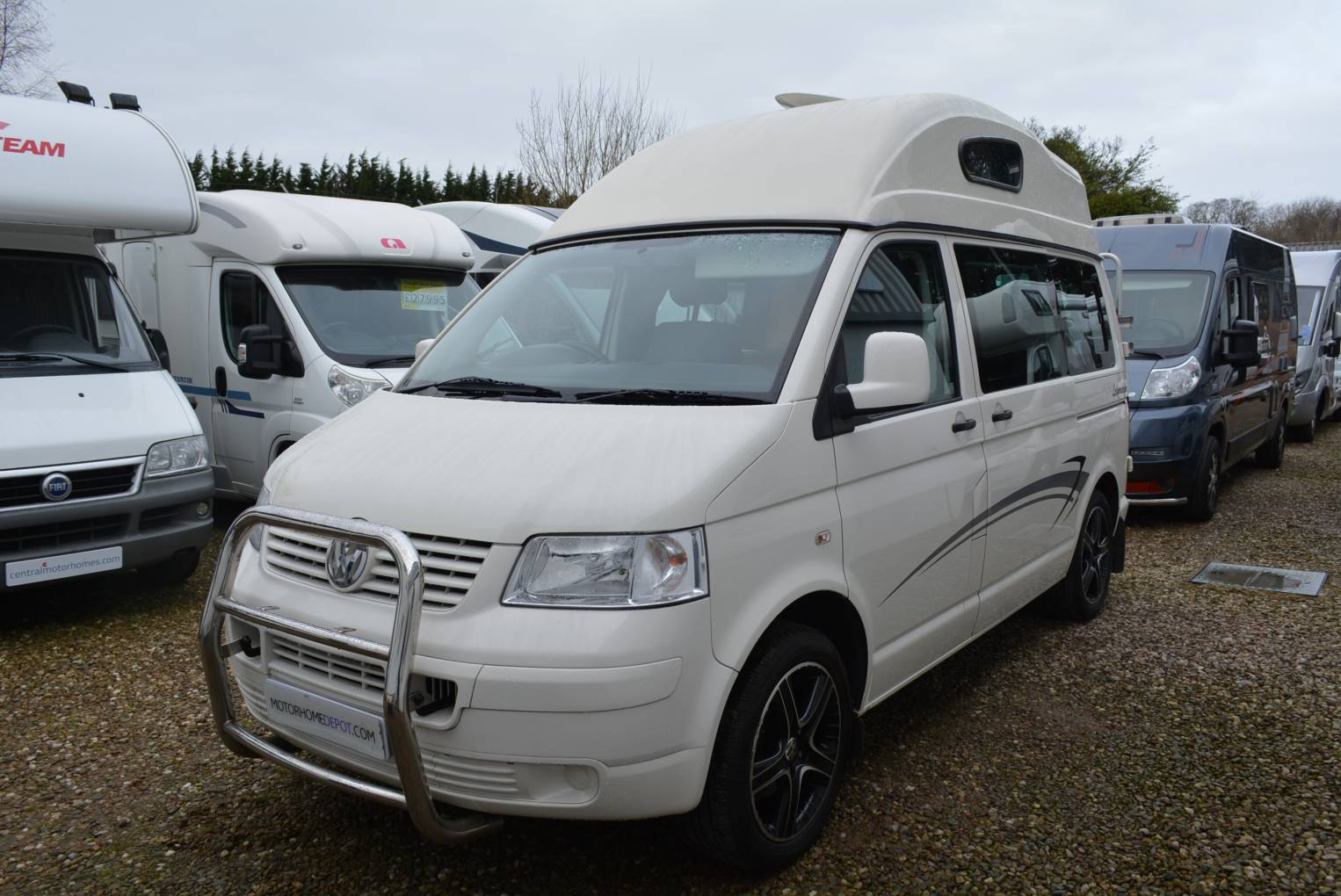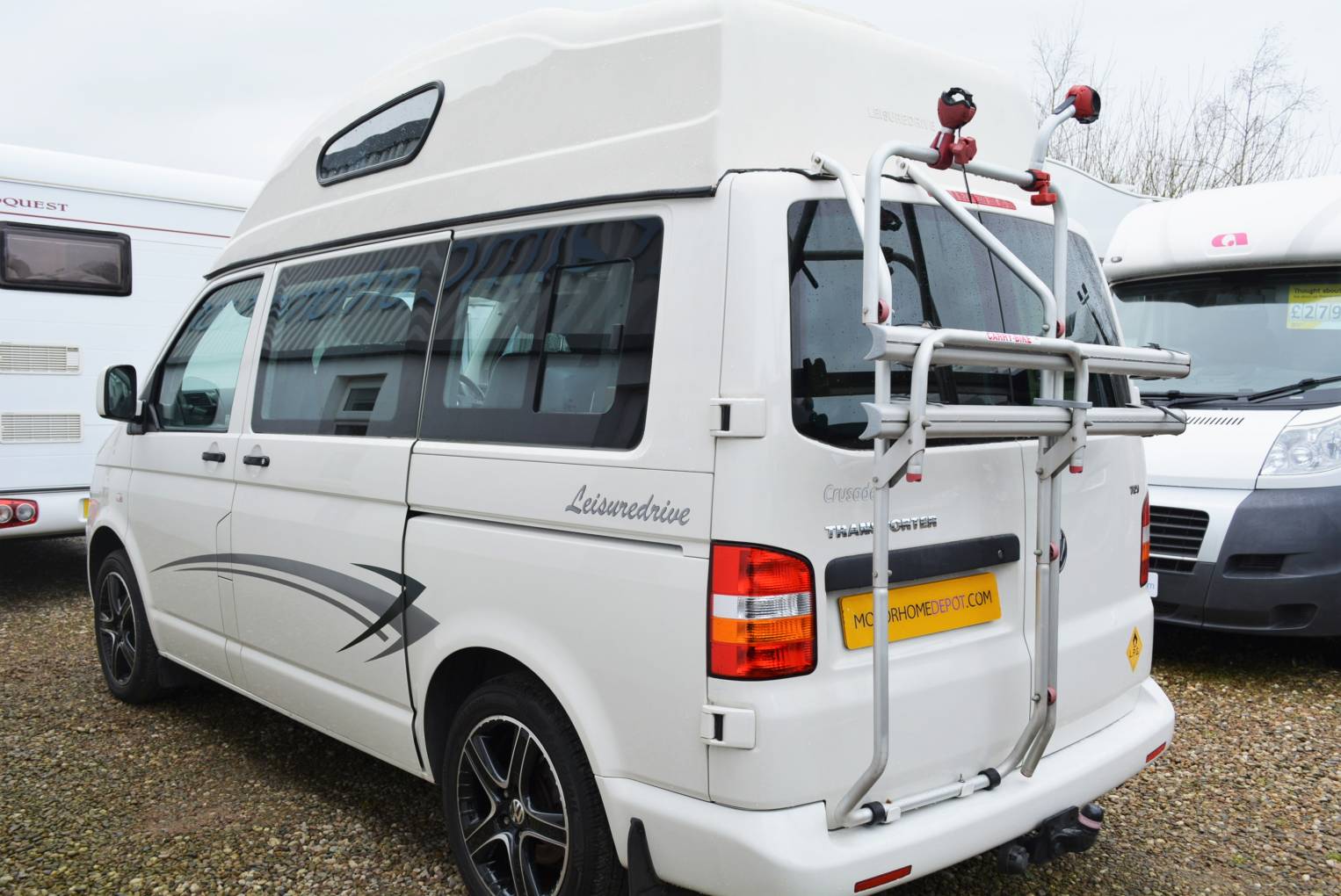 2008 Leisuredrive Crusader 4 berth Hi Top Camper for sale. Based on the ever reliable Volkswagen T28 TDi SWB chassis which makes this VW a great everyday vehicle as well as a very practical camper. It has been well maintained throughout and is presented in excellent condition. This professional build from Leisuredrive is built to a high specification level and includes on board 12 volt electrics, 240 volt electrics, gas hob, gas grill oven, sink with fresh water pump, on board heating, rock n roll bed, 4 seat belts, 12 volt lighting, swivel chair, bike rack and alloy wheels. Sale includes a full MOT with one years comprehensive warranty. We can provide attractive finance rates. Please call for further details.