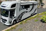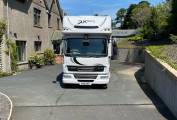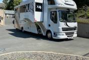 On a 2011 DAF auto chassis, no speed limit and 200bhp, a 2018 build with, 5/6 berth, all round leveling system fitted, Leather upholstery seats and matching steering wheel, this interior shows class and style. It's 26ft coach built body fully insulated with Full underfloor storage is very unique and extremely useful. It has 5kw generator with pull out slide enabling you to work outside with power even if your off grid,4 large leisure battery's with split charging and mains hook up. it has Full size flush finish awning electric with sides. (Over 5k worth), also It has an outside tv in locker, Awning lighting and bling lights outside. It has Unique fiberglass mouldings front and rear also a Large garage with built in tool box and tyre racking plus built in compressor led lighting. This will take 3 mx bikes or road bikes no problem, with tow bar.
