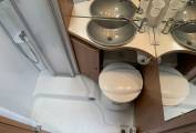 Adjacent to the kitchen is the large washroom which includes a shower, wash basin with mixer tap, cupboards and a separate Thetford toilet with further storage units.
