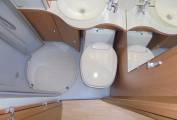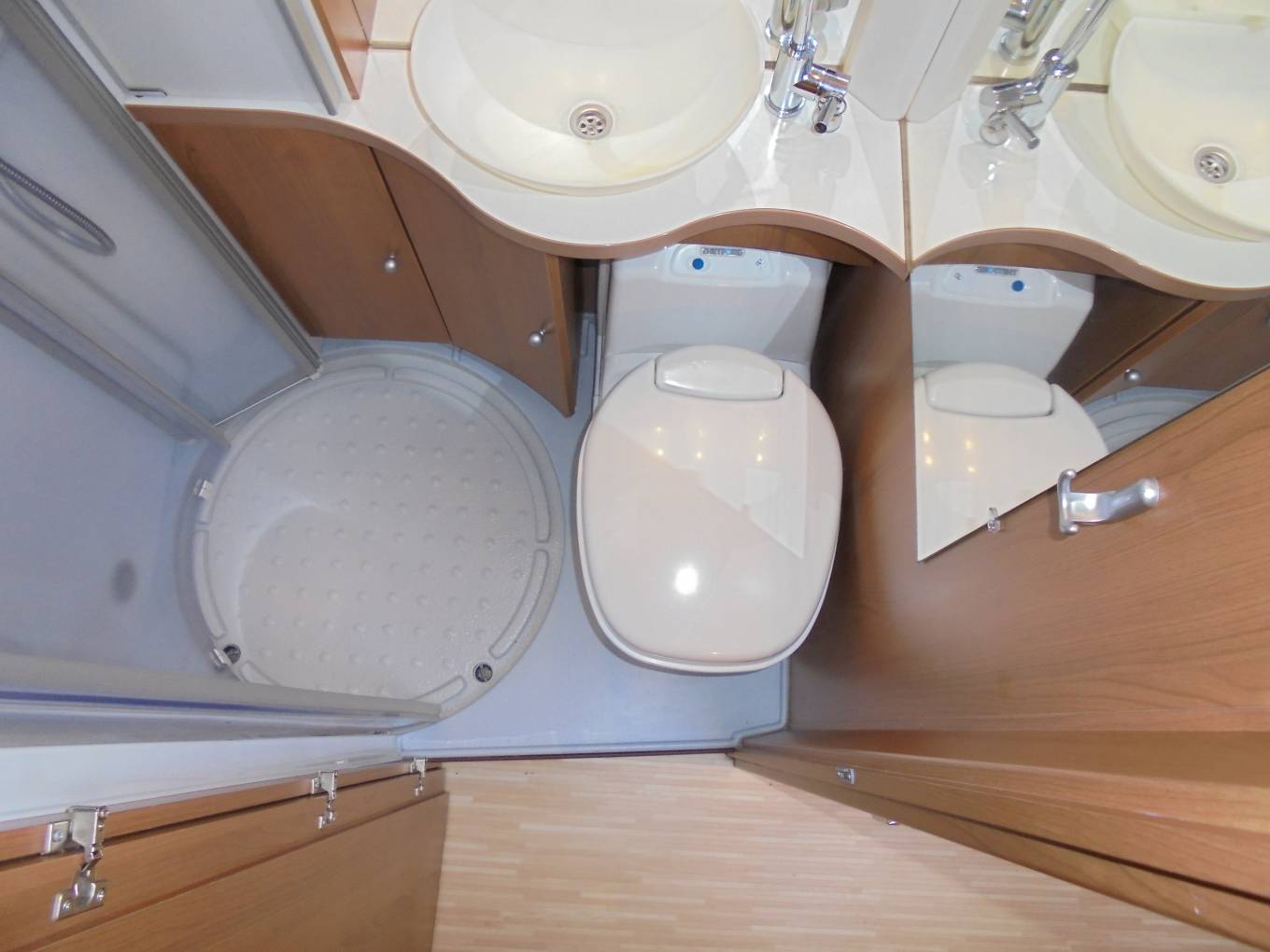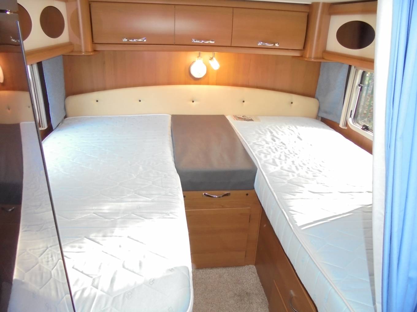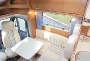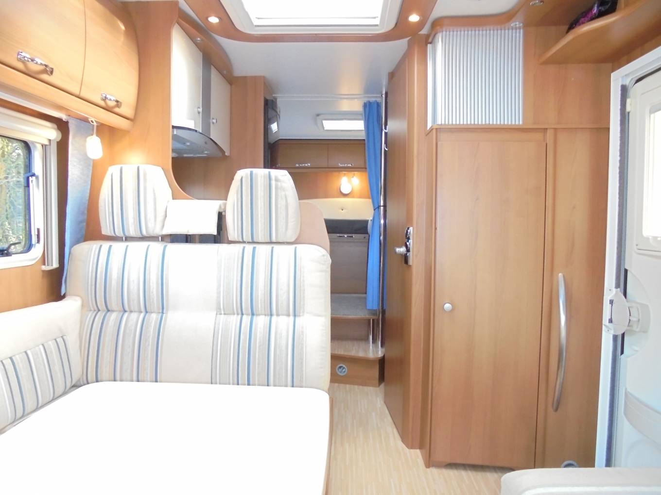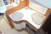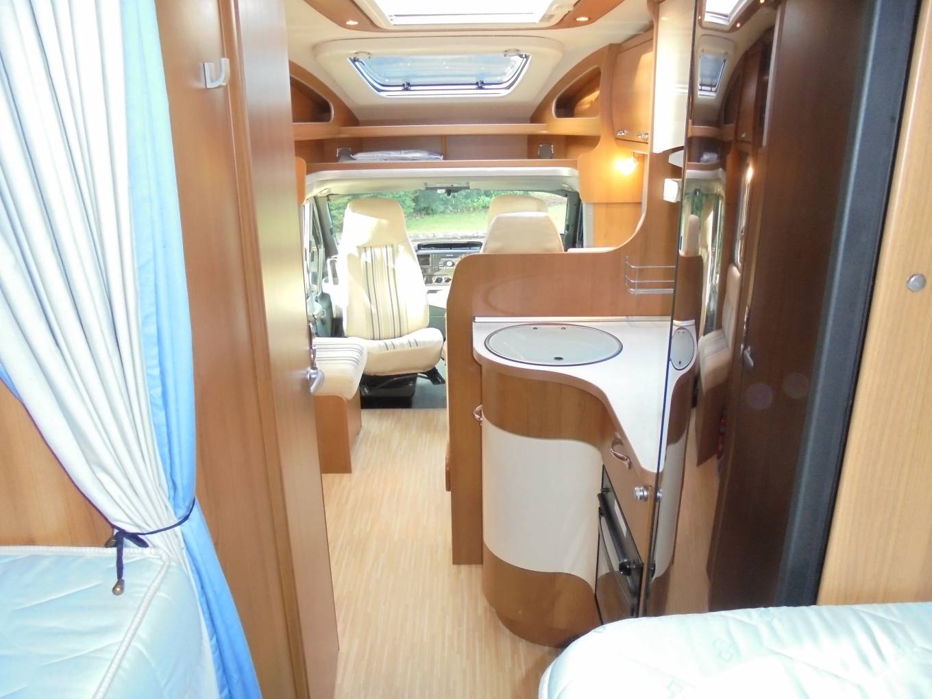 The main advantages of this garage, fixed bed motorhome are the size of the garage which will fit 2 scooters or mopeds, the open plan front lounge incorporating swivel seats, the modern fixtures and fittings as well as good sized bathroom and kitchen which also has a huge fridge/freezer.