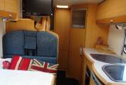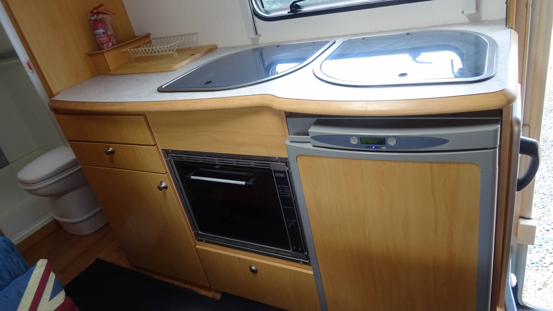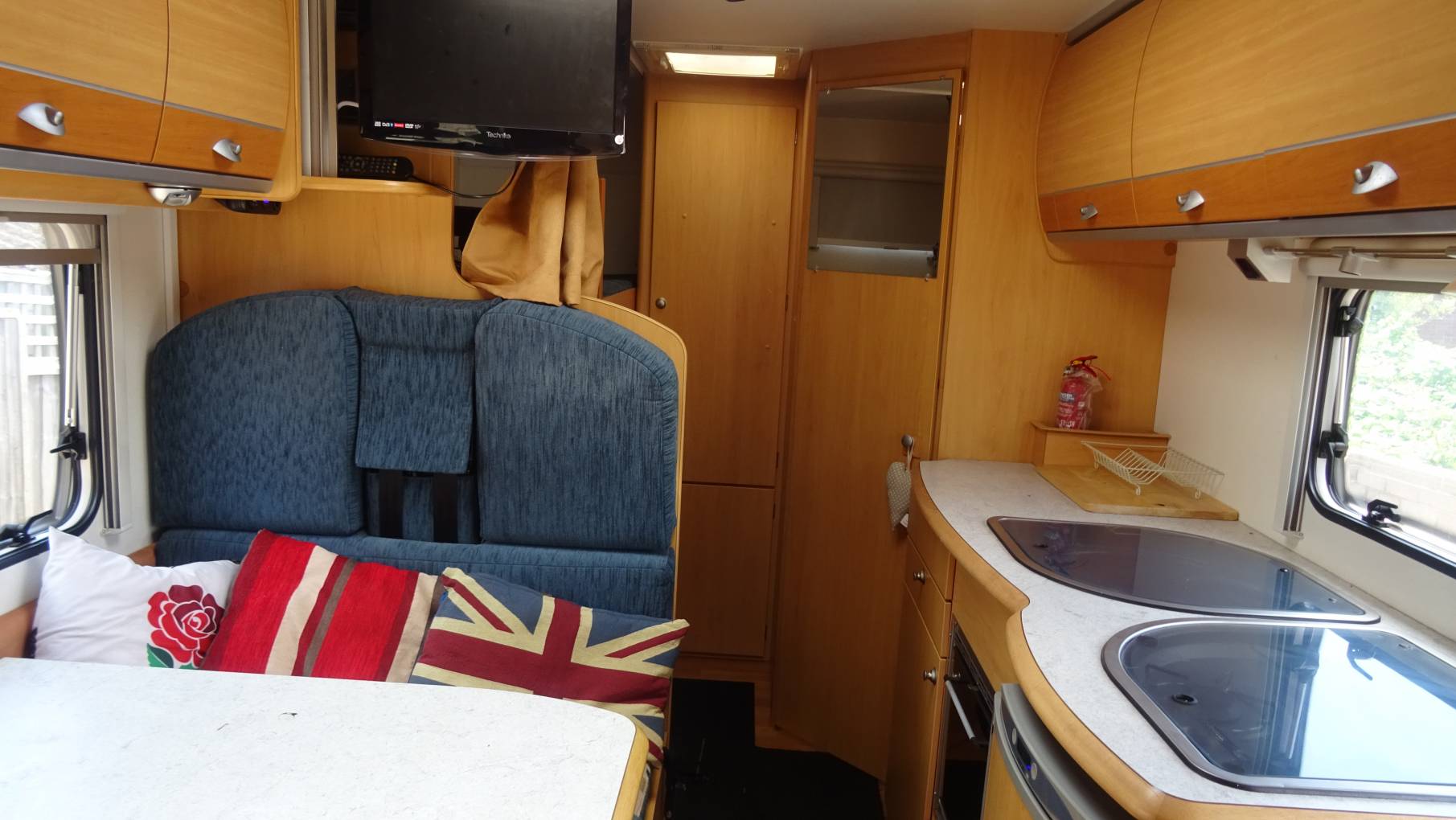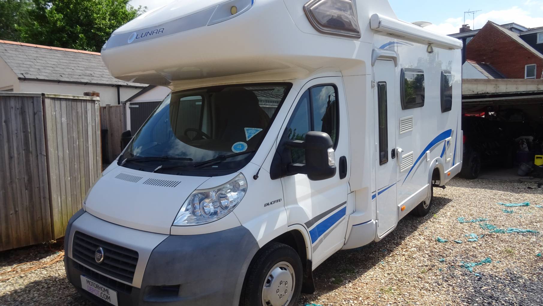 For sale - Lunar Champ A531 2.3L Manual Diesel 6 berth motorhome with 4 seat belts an overhead cab bed, side installed bunk beds and a dinette that converts to the remaining double bed. This is a great family motorhome with plenty of storage space for all that holiday equipment including the clever side locker which increases in volume with the lower bunk raised. The side fitted bunks allows for a larger washroom situated at the rear of the vehicle which includes a seperate shower with sliding door, a Thetford swivel toilet and a round stainless steel wash basin with mixer tap. The kitchen, to the right as you enter the habitational area, has a combined oven and grill, 3 ring gas hob, single bowl sink and a Thetford fridge with freezer compartment. The dinette opposite the kitchen will seat four and converts to a double bed and has two forward facing three point passenger seat belts. A cabinet located bracket mounted TV/DVD player is positioned above the dinette which can also be viewed from the swivel front passenger seat. The drivers cabin is equiped with a Pioneer radio/cd player, central locking, electric windows and driver's air bag. The motorhome also has fly screens and blinds in the habitational area, Truma combi boiler for heating and hot water, usb charge points, a sunroof and loads of low level and airline style overhead lockers for storage, not to mention a large wardrobe at the back. Externally you have a Fiamma F45 Awning, a bike rack for 3 bikes, a directional radio/TV aerial, a solar panel (dual battery charge) and a huge side locker. The Lunar Champ has travelled only 27,579 miles, has had a hab check and service in December 2019 , is MOT'd until June 2022 and the owner is happy to arrange a service for the Lunar, when a sale is agreed.