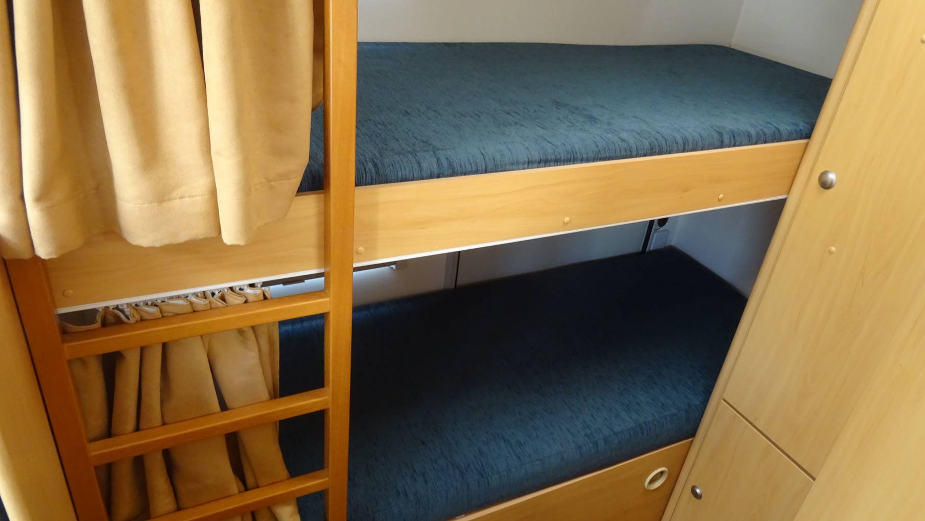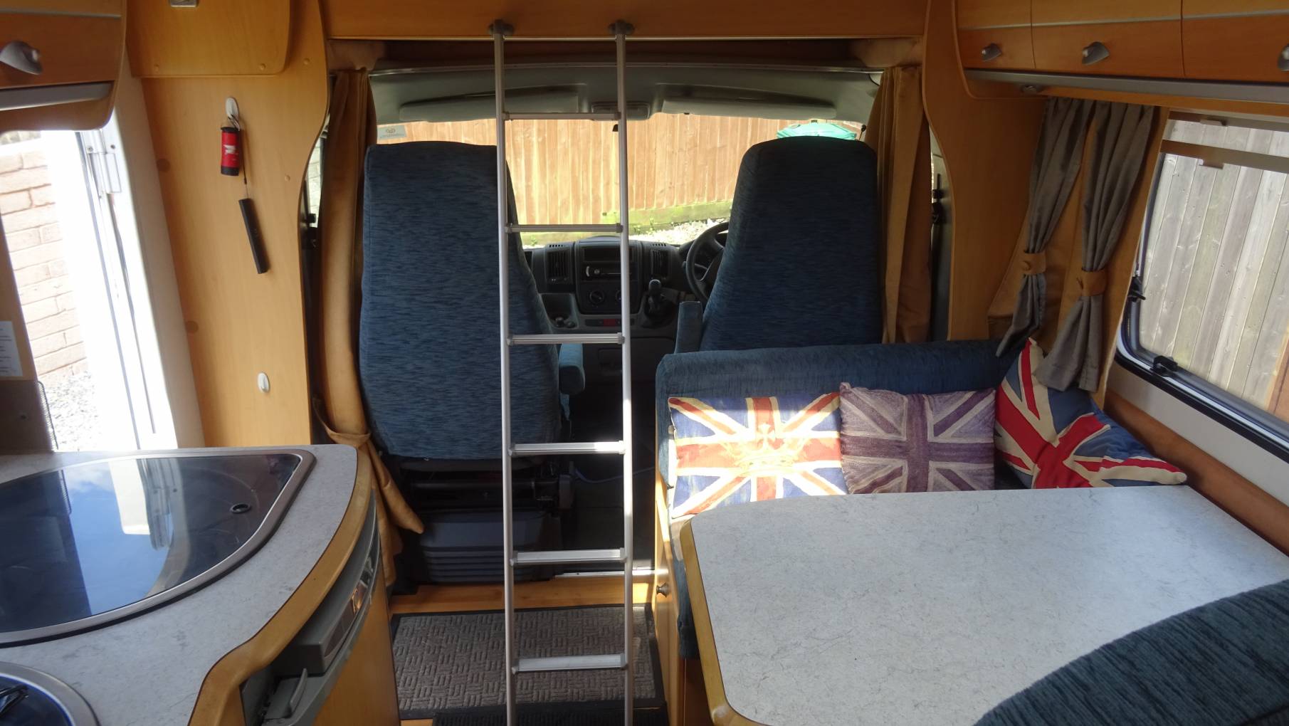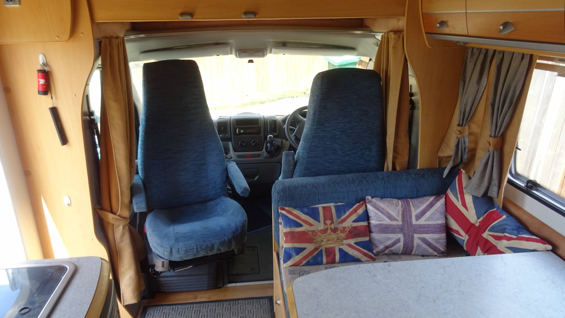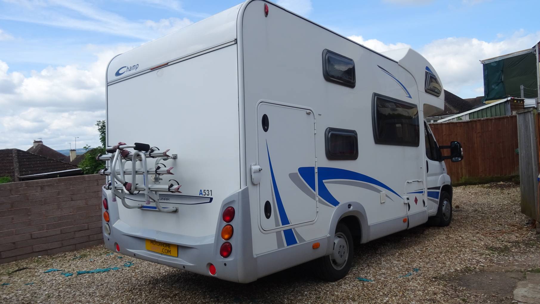 For sale - Lunar Champ A531 2.3L Manual Diesel 6 berth motorhome with 4 seat belts an overhead cab bed, side installed bunk beds and a dinette that converts to the remaining double bed. This is a great family motorhome with plenty of storage space for all that holiday equipment including the clever side locker which increases in volume with the lower bunk raised. The side fitted bunks allows for a larger washroom situated at the rear of the vehicle which includes a seperate shower with sliding door, a Thetford swivel toilet and a round stainless steel wash basin with mixer tap. The kitchen, to the right as you enter the habitational area, has a combined oven and grill, 3 ring gas hob, single bowl sink and a Thetford fridge with freezer compartment. The dinette opposite the kitchen will seat four and converts to a double bed and has two forward facing three point passenger seat belts. A cabinet located bracket mounted TV/DVD player is positioned above the dinette which can also be viewed from the swivel front passenger seat. The drivers cabin is equiped with a Pioneer radio/cd player, central locking, electric windows and driver's air bag. The motorhome also has fly screens and blinds in the habitational area, Truma combi boiler for heating and hot water, usb charge points, a sunroof and loads of low level and airline style overhead lockers for storage, not to mention a large wardrobe at the back. Externally you have a Fiamma F45 Awning, a bike rack for 3 bikes, a directional radio/TV aerial, a solar panel (dual battery charge) and a huge side locker. The Lunar Champ has travelled only 27,579 miles, has had a hab check and service in December 2019 , is MOT'd until June 2022 and the owner is happy to arrange a service for the Lunar, when a sale is agreed.