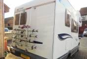 Outside the motorhome has an awning canopy, cycle rack and a storage locker. Base vehicle is Fiat Ducato 15 JTD 2286cc with 5 speed manual gear box. Approx vehicle dimensions are Length 5.56m, Width 2.25, Height 3.03m, Weight 3400kg.