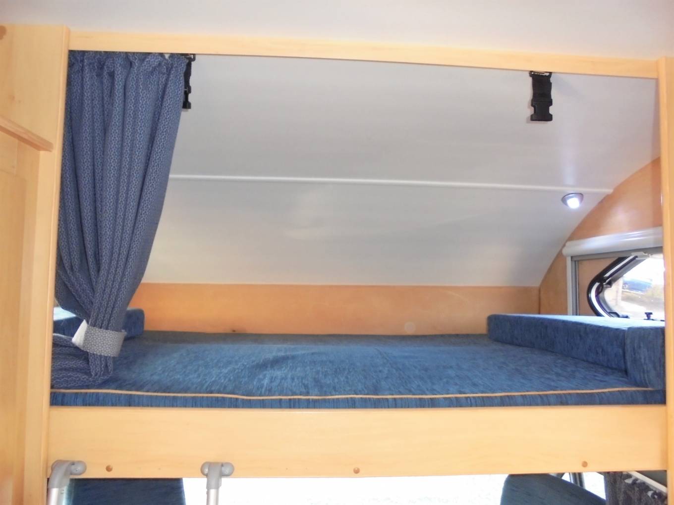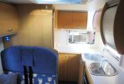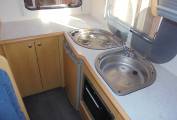 Layout is over cab double bed, front lounge and dining area which converts to double bed, rear kitchen and rear washroom.