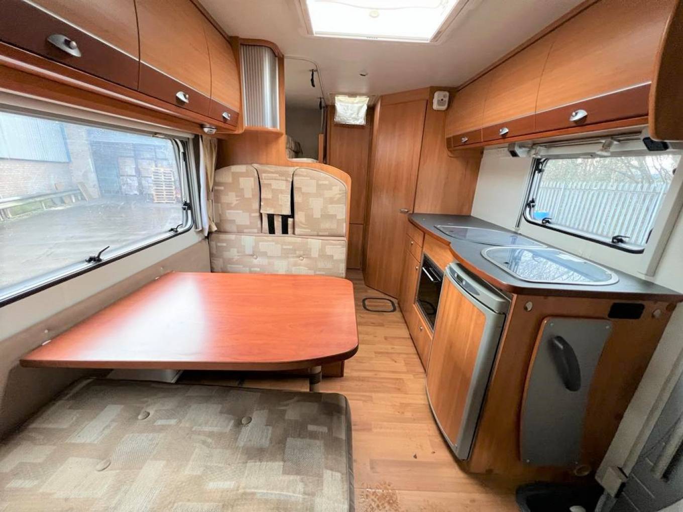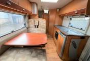 Moving forwards you come to the kitchen which has everything you need to rustle up a lovely meal. There is a 3 gas burner hob, oven/grille, a large Dometic 3 way fridge freezer with automatic selection, a sink with mixer tap, lots of storage space for utensils and ingredients plus a good work top area.