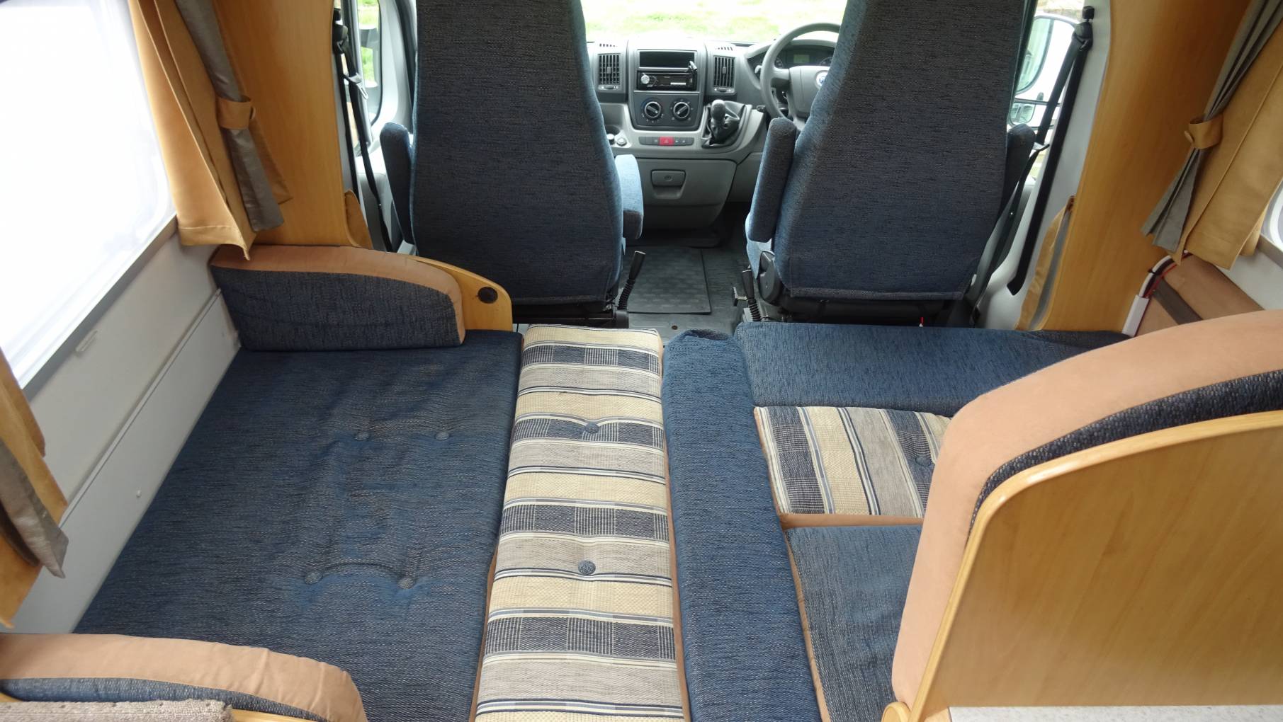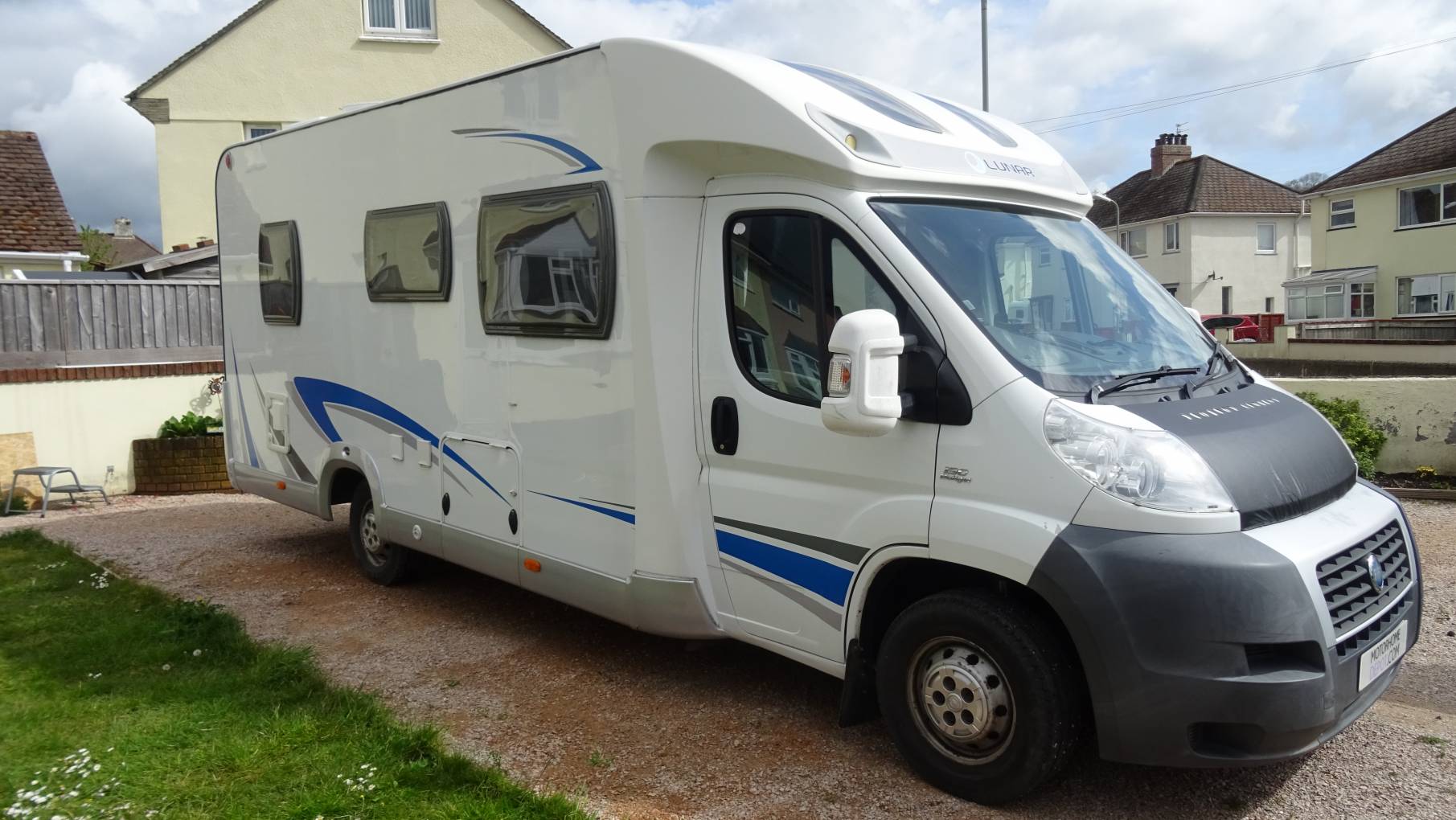 For Sale - A Lunar Champ H601 Diesel 2.3L 6 speed manual gear box registered in June 2007 which has had a cambelt change in June 2019. This 4 berth/4 seat belt motorhome is in lovely condition and has a large fixed french style bed at the rear with a washroom alongside, which has a seperate shower cubicle, a hand basin with mixer tap and a swivel Thetford toilet. The kitchen in the centre of the habitational area, has a combined oven and grill, a large fridge with freezer a compartment, a 3 ring gas hob, a single bowl sink with mixer tap alongside a very handy rinsing bowl. This motorhome has plenty of overhead and low level storage including outside lockers and a large wardrobe with a hanger rail. The lounge area has a bench seat behind the passenger and two seats opposite in a forward facing postion with 3 point seat belts. This lounge seating converts to a large double bed using either the table as a support or a bespoke sturdier set-up for a more comfortable sleep. The cabin has two captain chairs and benefits from having a Pioneer radio/cd player, electric windows, cruise control, central locking and a reversing camera. This well equiped motorhome also has a Camos dome satellite system, an habitational LPG bottle, a seperate gas bottle, a TV/DVD player, a solar system, a silver screen and a bike rack. With a good service history and an MOT valid until October 2021, this would be a great purchase awaiting its next owner.