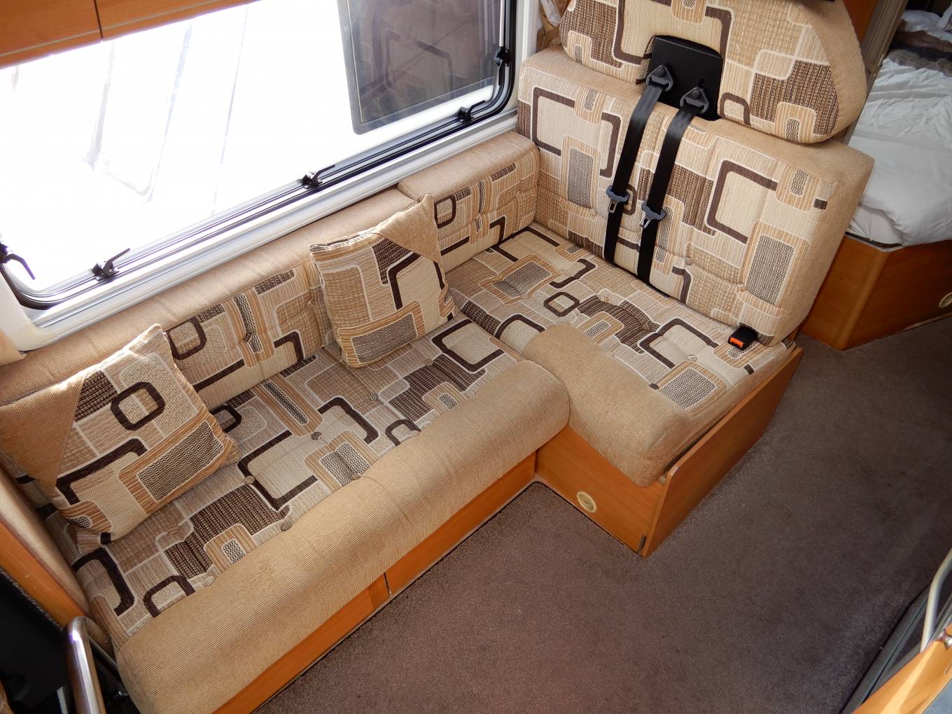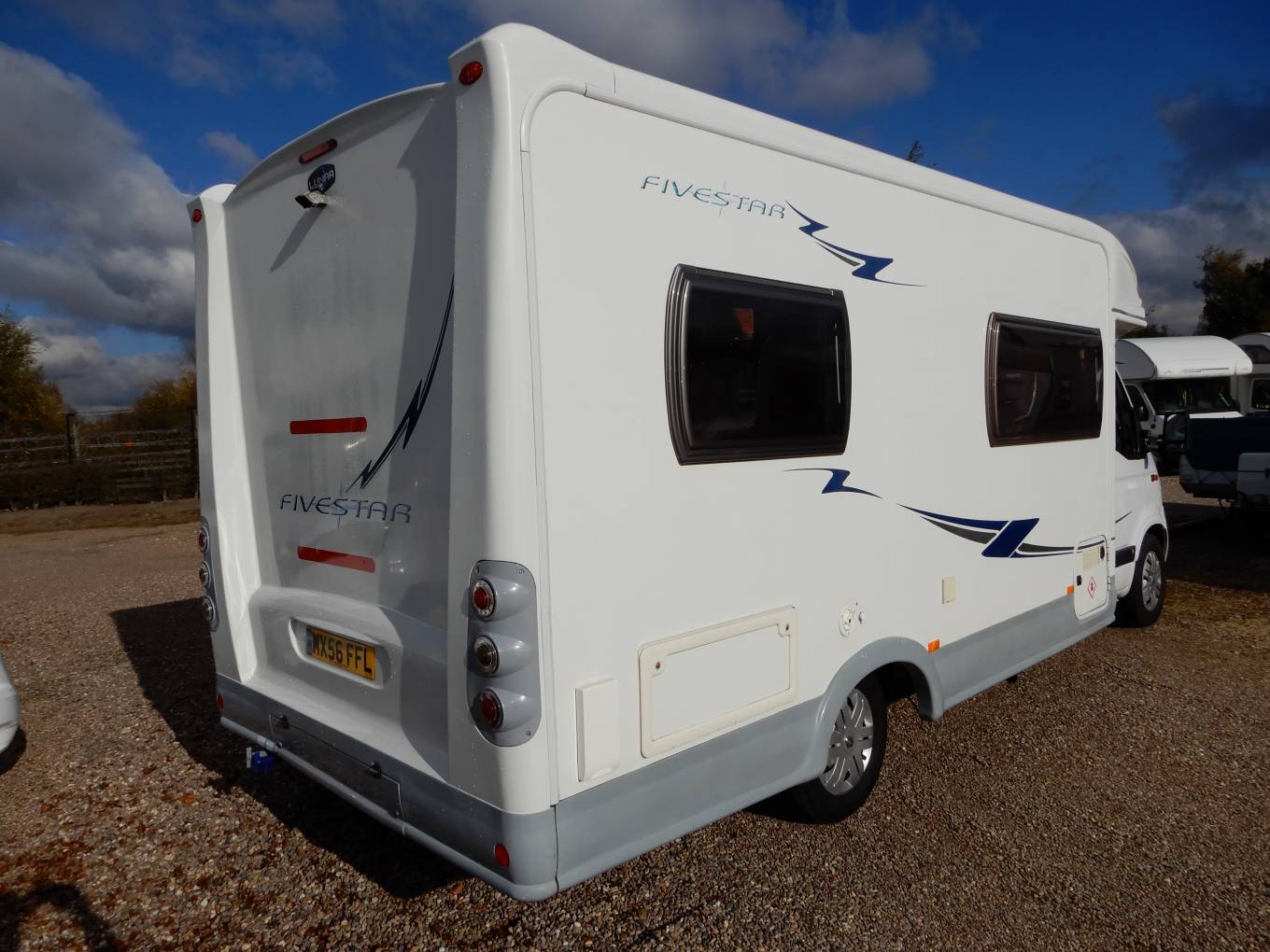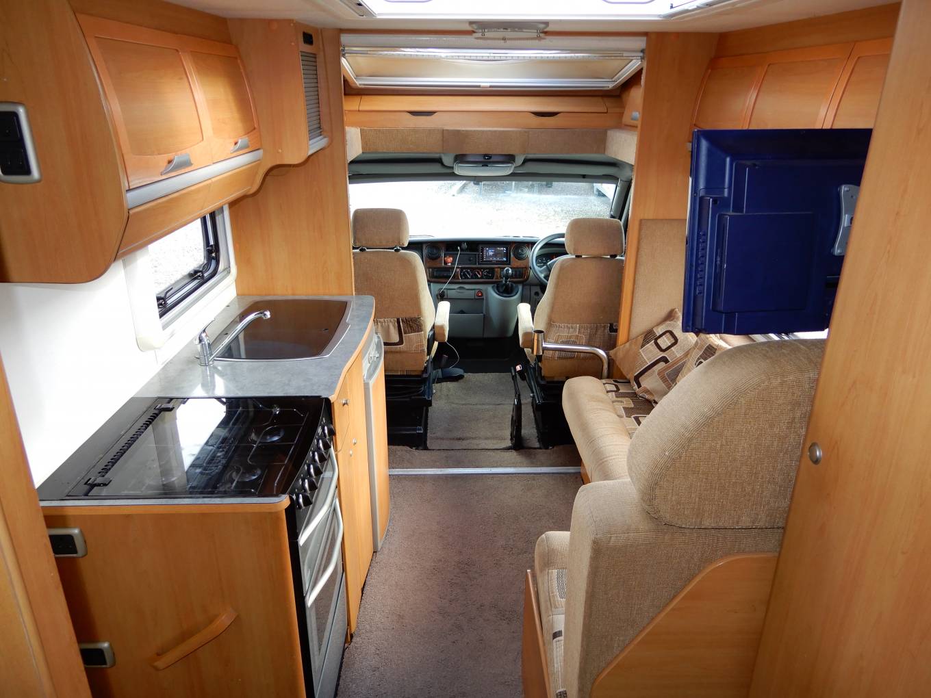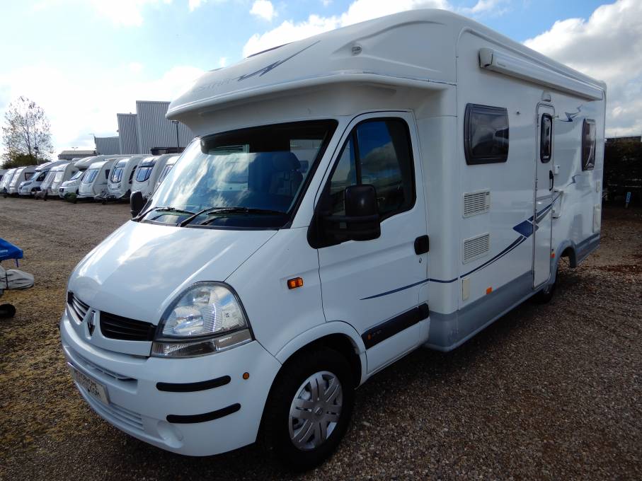 Lunar Fivestar based on a 2.5 Renault diesel with a 6 speed manual gearbox. This 2006 4 berth motorhome features a rear fixed french bed where 2 of the 4 berths are catered for. Just to the side of this you have a separate sink with tap, shower and toilet cassette. Moving forwards, you have a L shaped bench where you have 2 additional seatbelts to allow for 4 people to travel in total, the bench seat also pulls out into a double bed to cater for the final of the 4 berths. In your kitchen area you have a full oven with hob and grill, a sink with taps and a fridge. The 2 front seats swivel to allow for more people to be catered for in your main living area. For more information please call or email Aston Marsh.