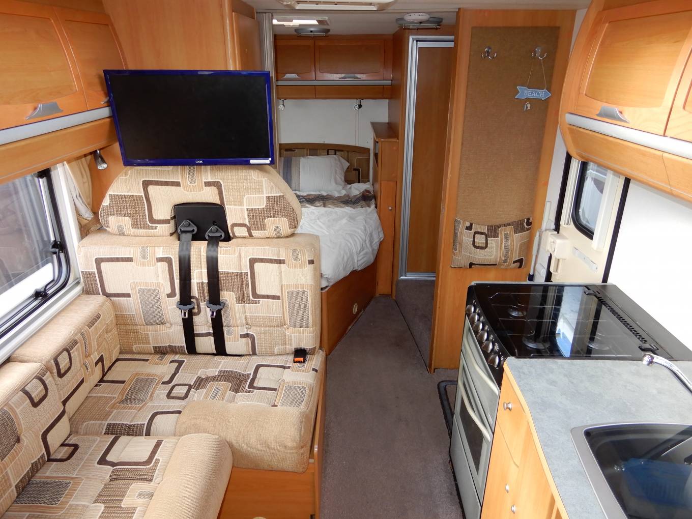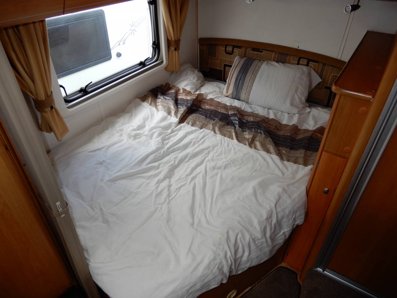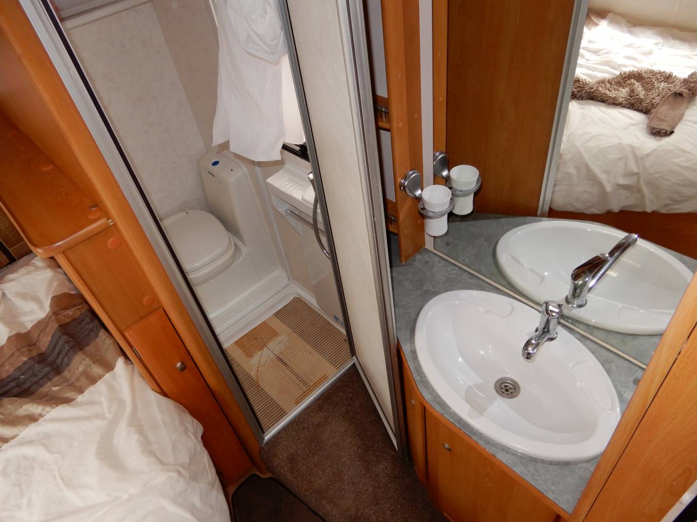 Lunar Fivestar based on a 2.5 Renault diesel with a 6 speed manual gearbox. This 2006 4 berth motorhome features a rear fixed french bed where 2 of the 4 berths are catered for. Just to the side of this you have a separate sink with tap, shower and toilet cassette. Moving forwards, you have a L shaped bench where you have 2 additional seatbelts to allow for 4 people to travel in total, the bench seat also pulls out into a double bed to cater for the final of the 4 berths. In your kitchen area you have a full oven with hob and grill, a sink with taps and a fridge. The 2 front seats swivel to allow for more people to be catered for in your main living area. For more information please call or email Aston Marsh.