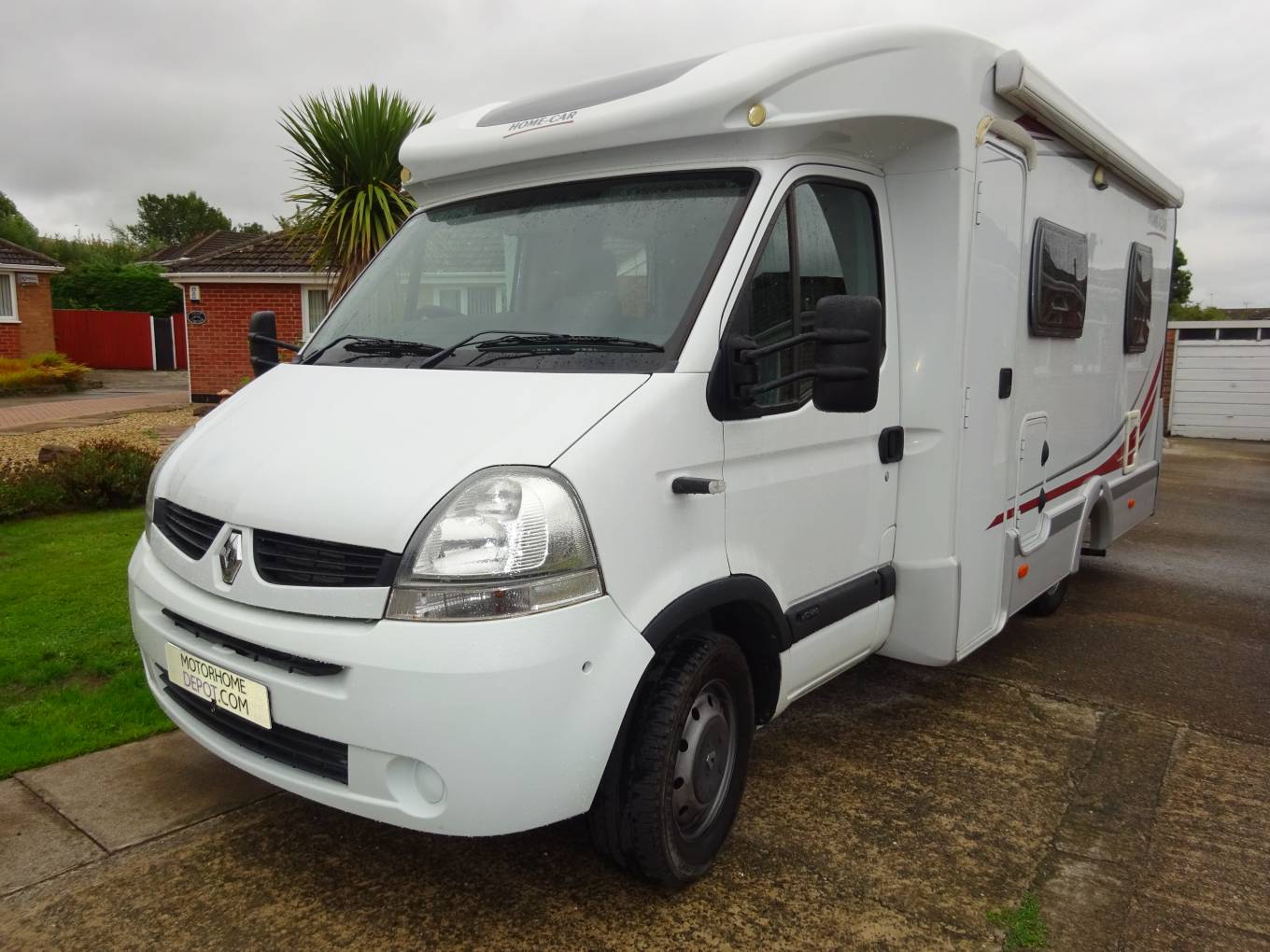 The base is a Renault Master with 2300cc diesel engine matched to 6 speed manual gearbox. There is cruise control, electric windows and mirrors. MOT’d until May 2019, mileage is 16872 backed up by previous MOTs. Outside we have a bike rack and tow bar with a Fiamma F45 awning. Gas bottle included. Clean and tidy this motorhome has done its work for the summer and is ready for its next owner.