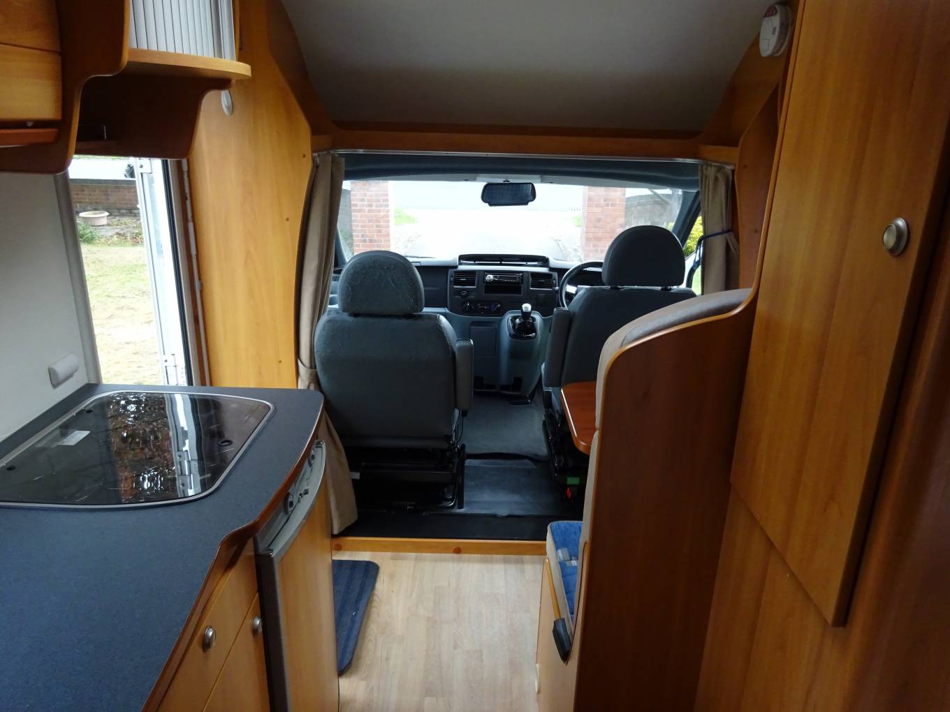 In the cab power steering, electric front windows, electric mirrors, cruise control and driver and passenger airbags. Fronts seats have car like seat coverings and are in very good condition. A JVC CD Radio has been fitted. Low mileage supported by very good MoT test history. Outside this motorhome has been equipped with two Gaslow refillable LPG bottles. There is a bike rack on the back and a Drive Away awning, not used by current owner, is included in the sale. There is a Fiamma F45s Awning and Fiamma lock on habitation door.