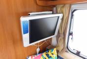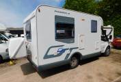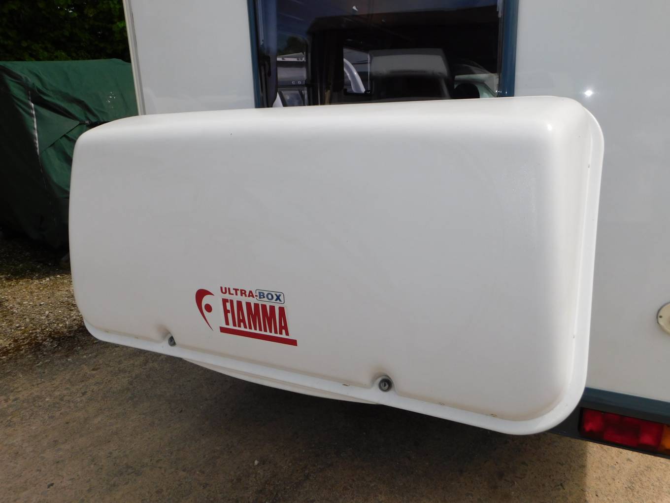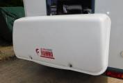 Outside you have a roof mounted elongated TV aerial, a Fiamma bike rack for two cycles, Fiamma rear mounted storage box that sits on the bike rack but can be removed. A gas locker with two propane bottles included, access locker to the under-bench seat storage area, a safety and security handle by the hab door.