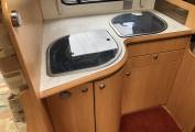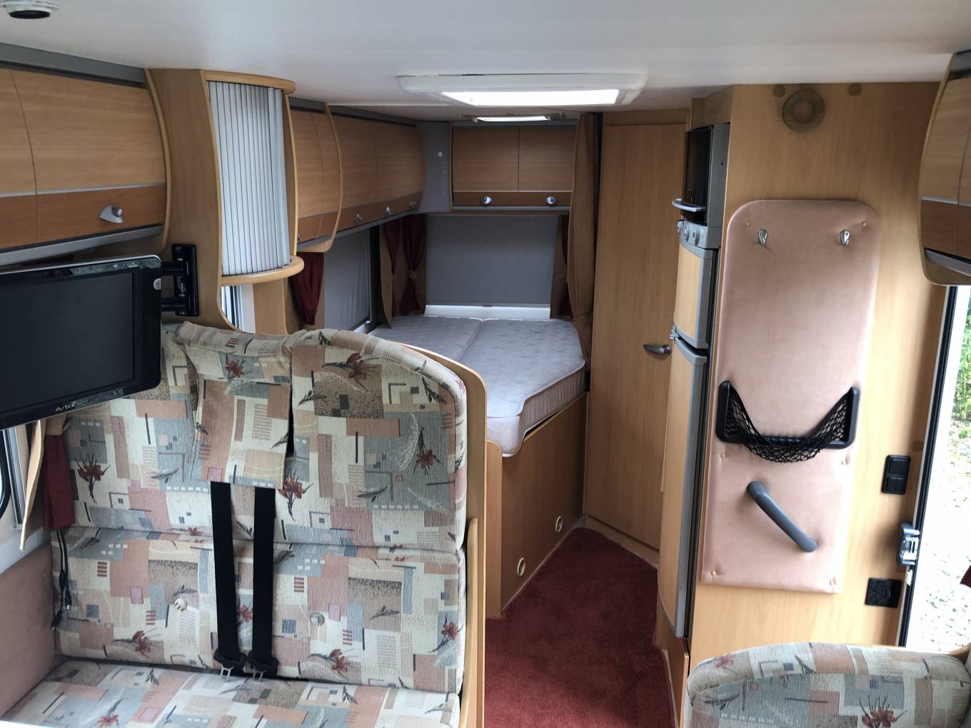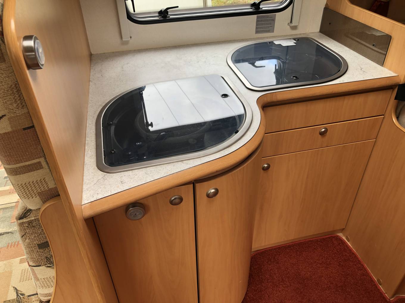 As you step inside the motorhome you get a real feel for the condition of the Motorhome with a light, warm, comfortable feel. The two captains chairs with a fixed table making for a seating area to easily accommodate 5 people. The well equipped kitchen with 3 burner gas hob, oven, sink, and three way fridge with separate freezer allows for all your cooking needs. At the rear of the motorhome is a french bed and a nice sized bathroom with a large separate shower. There is ample storage throughout the living area, kitchen and bathroom for all your needs including a large wardrobe and under bed storage accessible from the outside. The upholstery and units are all in excellent condition.
