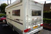 Outside it is fitted with a bike rack and tow bar and alloy wheels. Also included in the sale are a waste water barrel and a thermal screen cover.