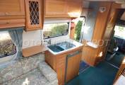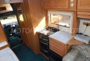 Using the electric step to enter and the kitchen is to your right, with a large square green sink with draining board and green mixer tap, below is an Electrolux three-way powered fridge with freezer box. Opposite is a matching cooker with four gas burners, gas grill and oven beneath all in exceptional order. The vent above the kitchen isn't opening but the fan works. There is also a Samsung microwave oven built-in to the bottom locker of the nearside sofa, plenty of upper and lower cabinets plus drawers to store-away all of your holiday provisions.
