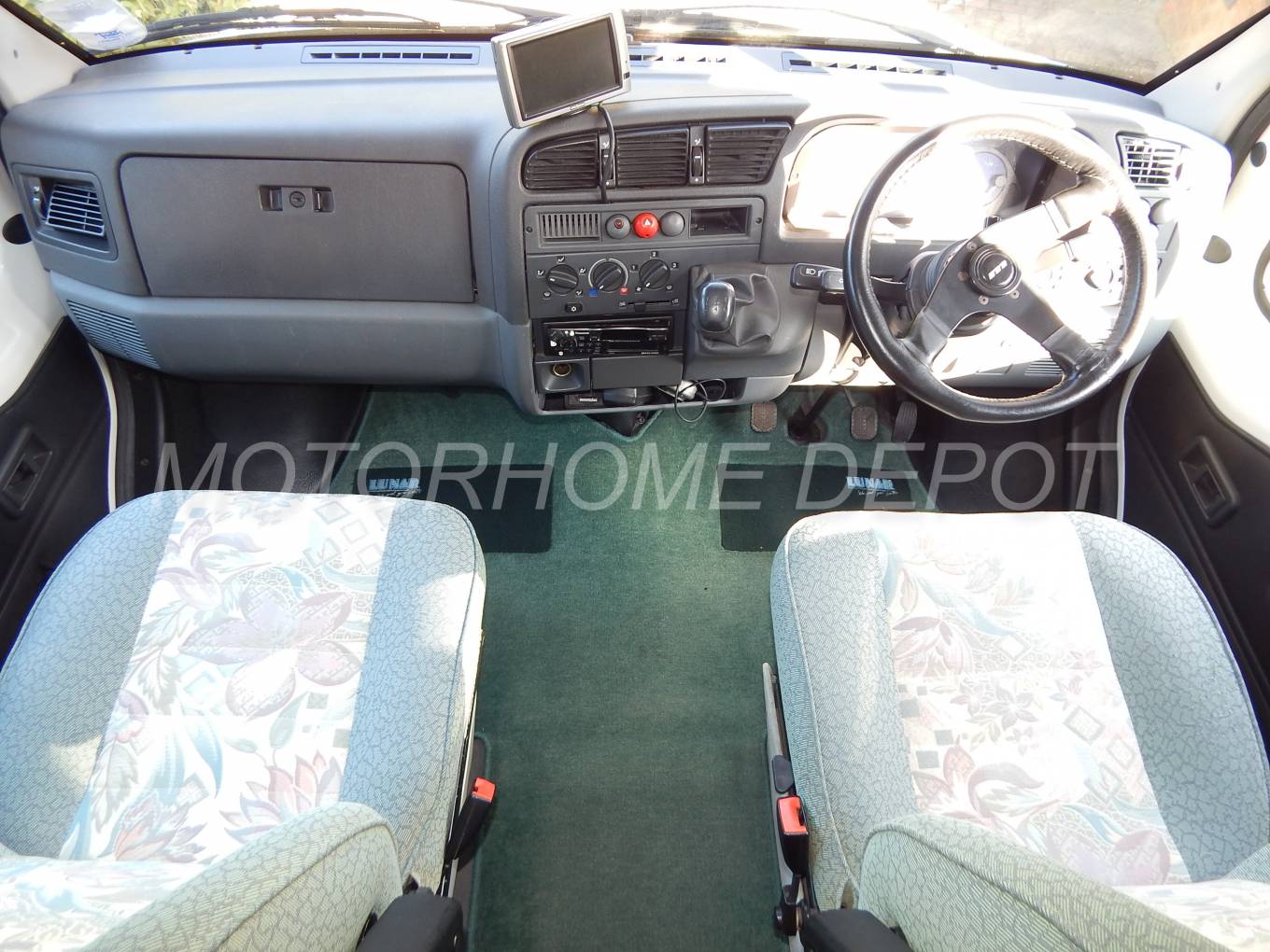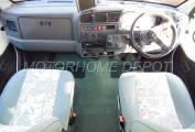The over-cab bed has a large and spacious, with windows each side, a reading light, an aluminium access ladder and privacy curtains. The safety net (if needed) has a tear.