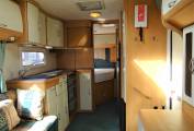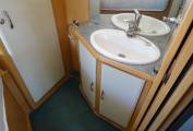 Entering through the habitation door, this motorhome is spacious and comfortable lounge area with its large side sofa that converts into a double bed and there is also a large above cab bed that sleeps 2 people. The kitchen is central with a full cooker, oven, grill, 4 burner gas hob, large fridge with a freezer compartment and a sink. At the rear on one side we have the washroom with cassette toilet, shower and sink with mixer tap and on the other side at the rear is the double French bed which lifts and has additional storage underneath that can also be accessed through the external locker.