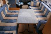 The meticulously designed interior has a front lounge with two side-facing settees with luxurious fitted upholstery with sprung interior base cushions which provides two generous sized single beds or a large double.
