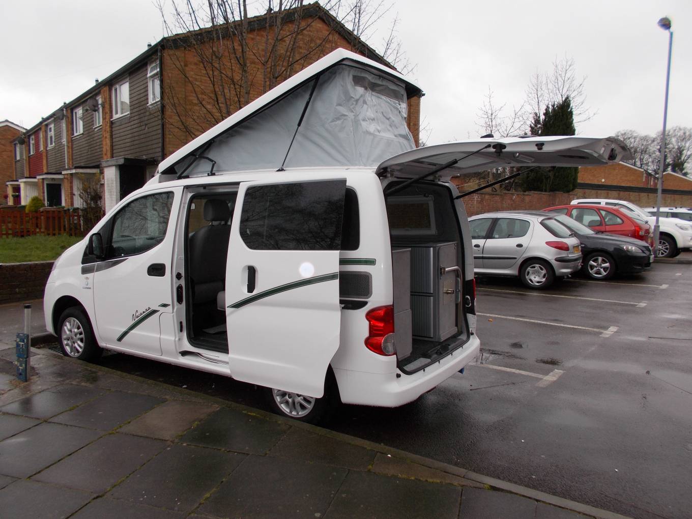 2013 Lunar Vacanza four berth Campervan based on the award winning Nissan NV 200 Combi, able to accommodate four people by day or night; the flexibility of a family car with four seat belts, desirable fuel economy and environmentally friendly. The interior is a frosted steel colour scheme for the furniture, lockers and seats. The rotating front seats are a registered design, designed in-house by the Lunar design team. In the compact kitchen you’ll find a neat fridge, a mini-oven and grill, a three-burner hob and a dinky sink. The innovative sleep system was commissioned by the Lunar design team and made in Lancashire. It’s a unique system that doesn’t take long to make up or dismantle and there are no fussy or bulky cushions to wrestle with either. Kids will love sleeping under the stars in the roof bed in the pop-up roof with canvas sides. For the driver we have a 1.5 diesel engine giving excellent fuel economy, electric front windows and door mirrors, central locking, adjustable headlamps, air con, driver and passenger airbags, radio CD player and Bluetooth phone connectivity. There is also a Webasto heating system, air mattress and a built in marine compressor. In excellent condition both inside and out, FSH, booked in first week of April 2018 for a full service, MOT and new cambelt. Optional Vango Airway Idris low awning available for an additional 300.00. Located in Bedfordshire. For further information and extensive photos please call Alan on 01327 844 790 or 07525 841 632.