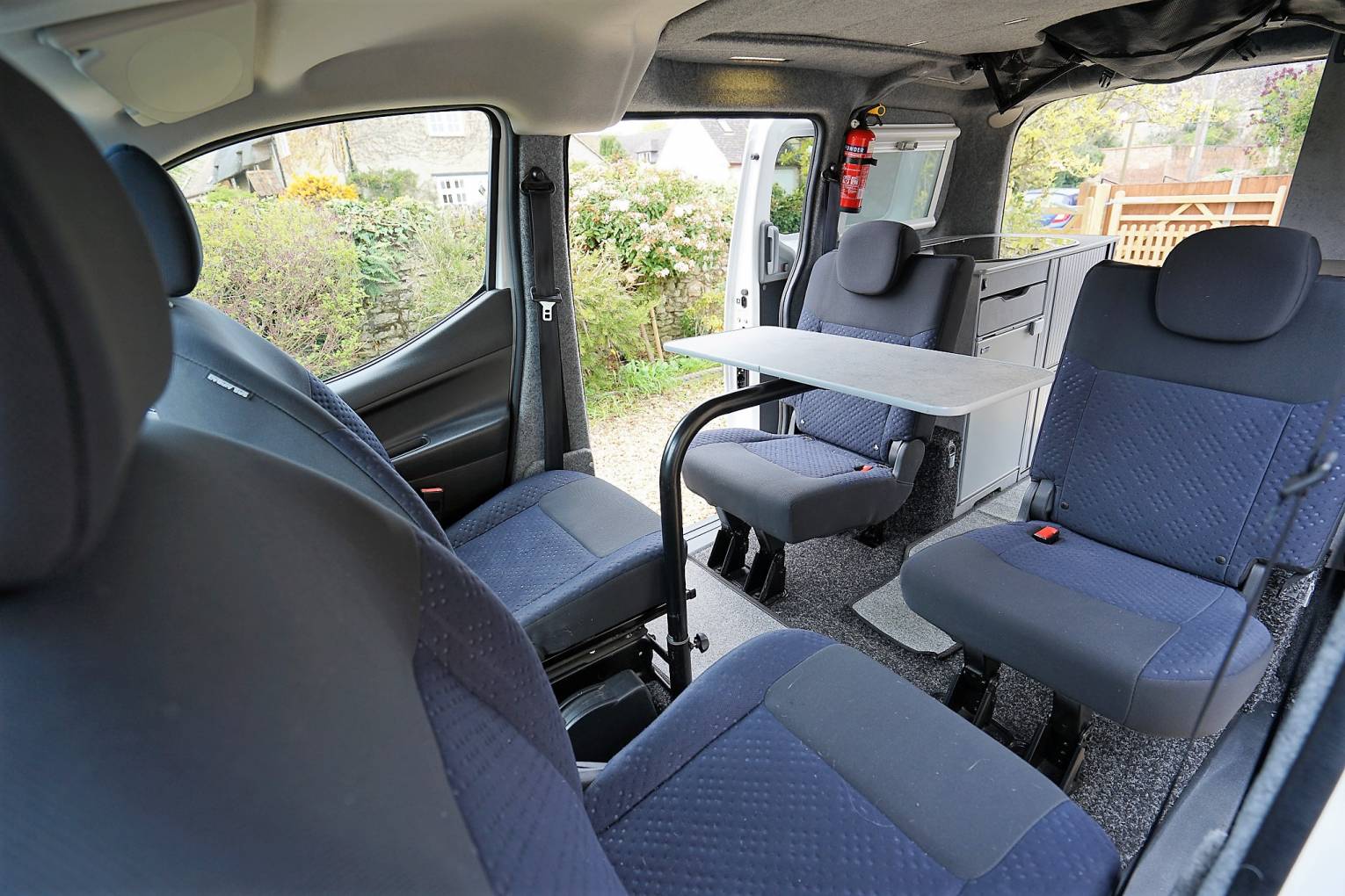 seatbelts, so four travelling seats in total, the front seats swivel to face