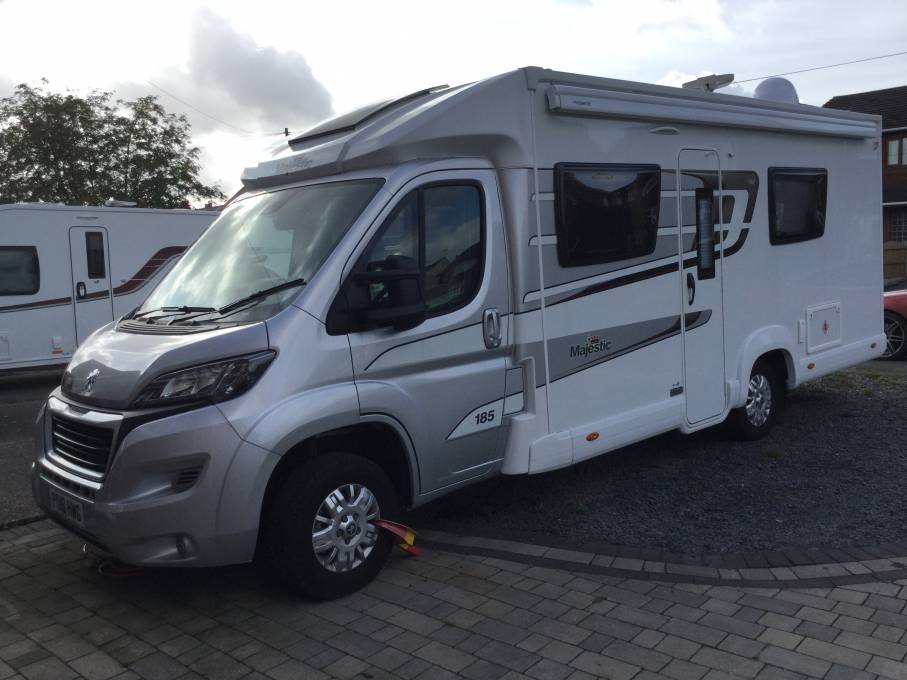 ELDDIS MAJESTIC 4 BERTH WITH NOMINAL MILEAGE AND HIGH SPEC. This well appointed Majestic is in as new condition throughout and has covered less than 600 miles from new. The twin single bed layout is very practical and allows easy access to the generous rear washroom day and night. Lovely kitchen with hob, fridge freezer, oven and grill. Comfortable fore lounge area with pop up travel seats and Skyview satellite TV. Comes equipped with Tracker security system, reversing camera, solar panel, sat nav, air con, cruise control, auto lights and a bike rack. Registered in July 2018 this well appointed Majestic comes with a full service history and balance of manufacturers warranty. For further details please call Simon on 01432 488 996. Part exchange welcome. We take motorhomes, campervans, caravans, cars and boats. Finance available.