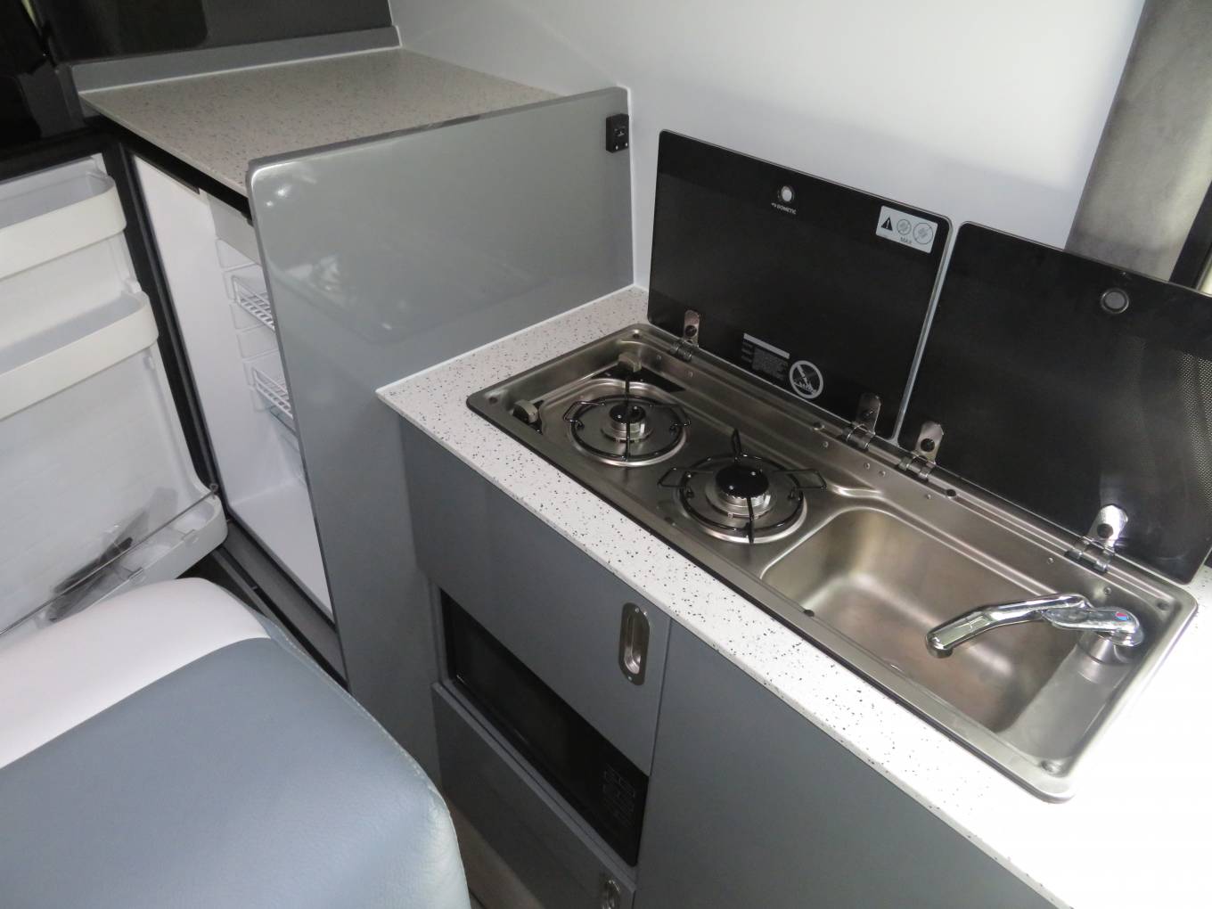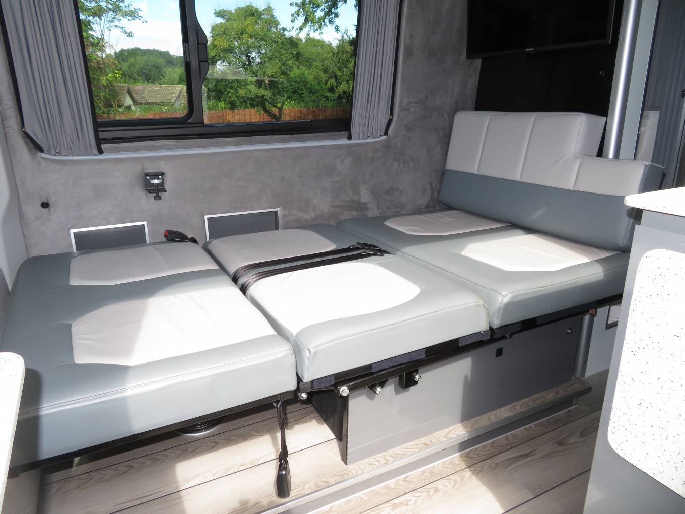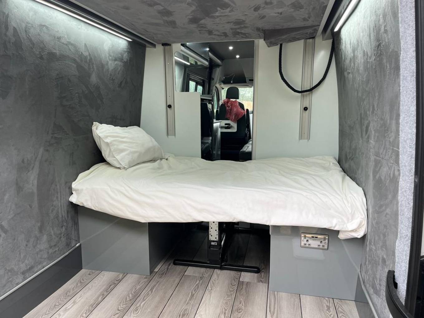This camper is a brand new conversion and has the 2L, 8 Speed auto gearbox making it a joy to drive. It comes with cab air conditioning, reversing camera and Apple Play compatible media centre as well as a built in Hafele Remo speaker system through the van. The camper also includes a 4G Sim Wifi router.
