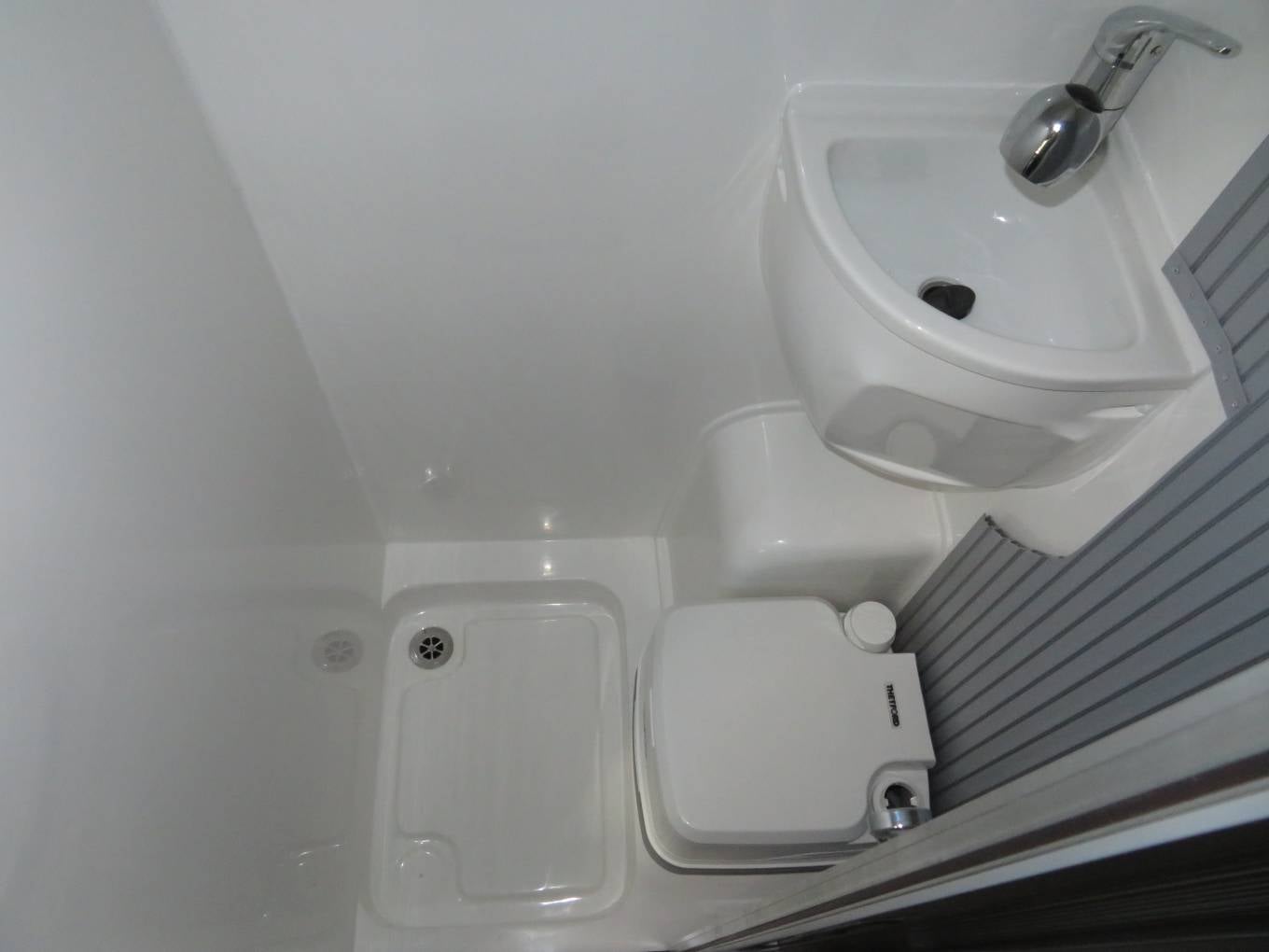 Externally this camper is packed with extras, this includes solar panel, inverter, large wind-out awning and external gas point. In the rear there is also an external shower or wash point that is ideal for dirty boots, washing feet or equipment. The camper also has a 110 litre fresh water tank and 90 litre waste.