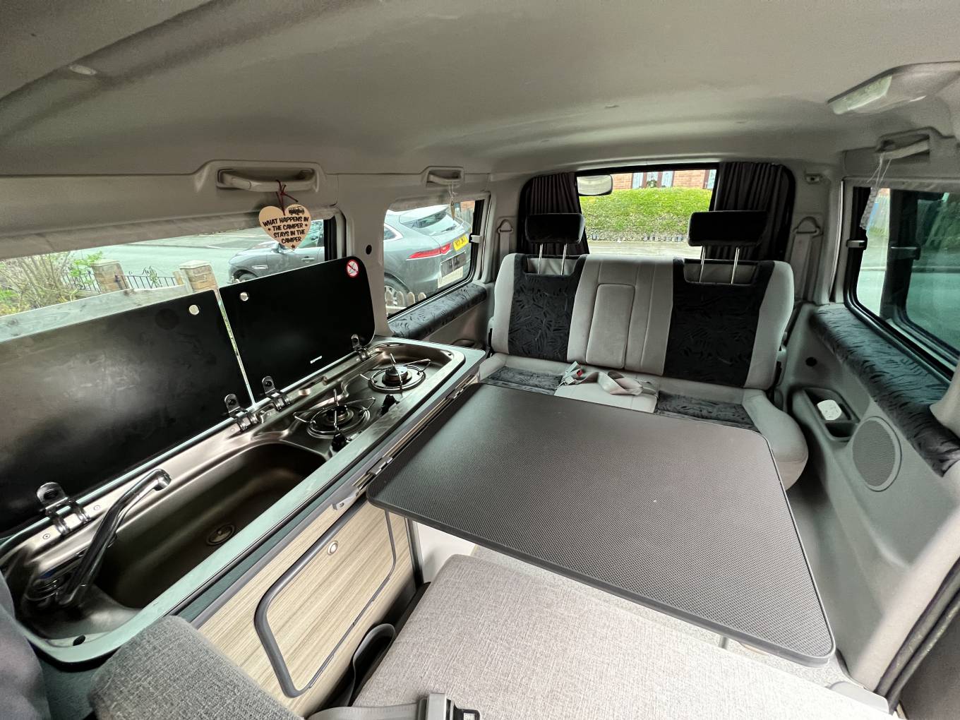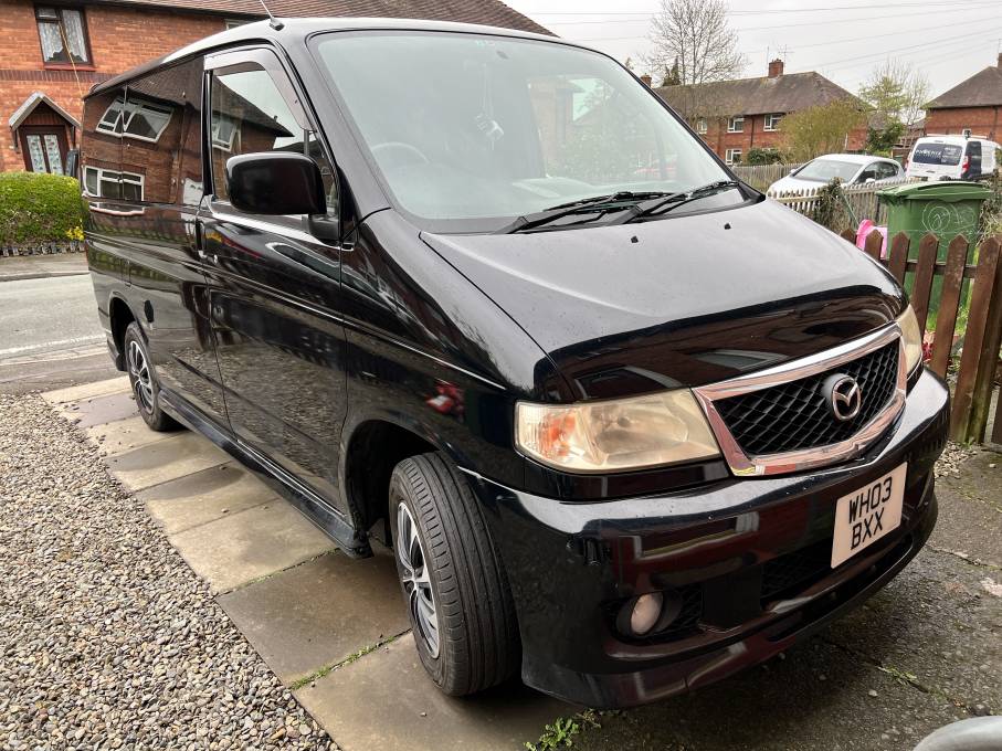 Mazda Bongo 7 seater Camper Van 1990 cc Auto petrol in black with only 52,710 miles. This camper benefits from 7 seats and is fitted with a 2 ring hob, fridge and sink (currently the water pump is not working however this is cheap to replace) with table in a centre configuration, it is 2 berth with an ample size bed once made up. There is storage throughout the camper which is fitted with electronic rear blinds and air conditioning along with heating throughout. the camper comes with a separate awning and 2 sets of keys along with 2 gas bottles. The camper was fully undersealed 18 months prior and is fitted with reversing sensors, external hook up and a good set of tyres all round. The MOT is due in July 2022 and will be re MOT'd then or prior to sale. Contact Neil for further information or to arrange a viewing.