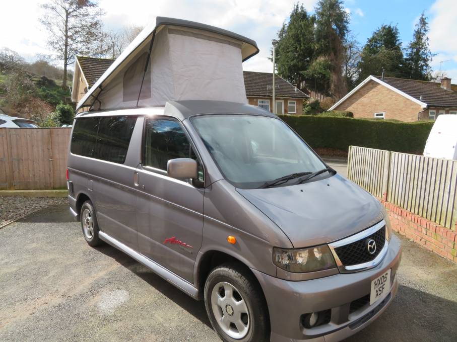 Motorhome depot presents this 2005 Mazda Bongo Camper van, located in Velindre, Brecon. The van is a 4 berth 6 seater new shape top model 2.0 petrol with a smooth auto gearbox & power steering. The head has been replaced along with the cam belt and water pump in 2019. The under side of the van has been under sealed. The van also has a lift up roof, side kitchen conversion, colour coded bumpers and side skirts. Outside there's silver paintwork with factory body kit & rear roof spoiler, it has alloy wheels, tinted privacy glass, electric assisted soft close side door and wind deflectors.