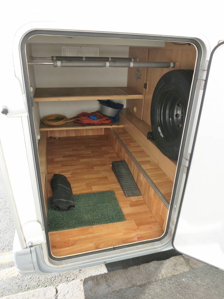SUPER COMPACT 2 BERTH WITH MASSIVE GARAGE. If you are looking for a compact van but with a large garage for bikes or dogs then this is perfect! At under 6m long this motorhome can go anywhere. Layout includes A small front dinette that utilizes the front swivel seats, a fixed double over the massive garage, full washroom with sink and shower, and kitchen with hob, sink and 3 way fridge. Features and Extras; Alarm, Reversing Camera, 2x Solar Panels, 2x Leisure Batteries, TV, Inverter, Bike Rack, Awning, Additional door and window locks and other accessories. CALL KARL FOR MORE INFO 07906682208