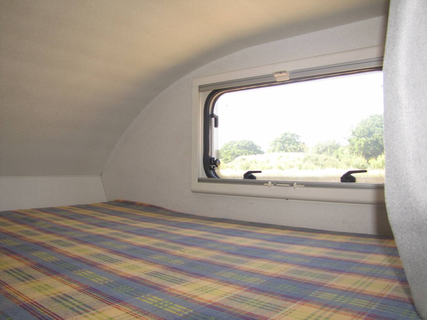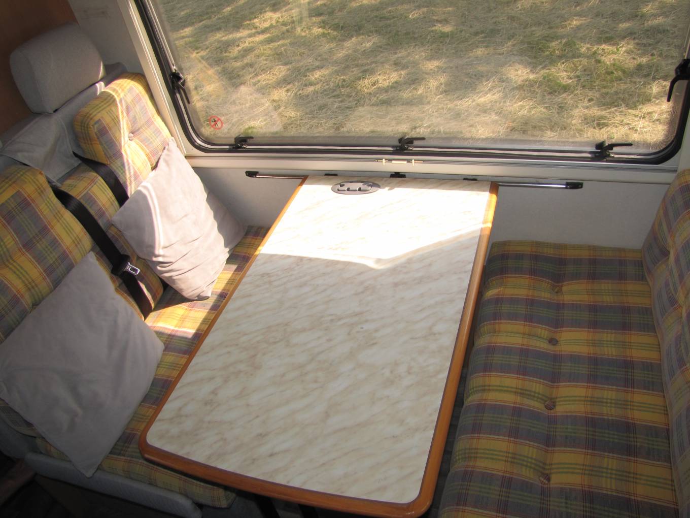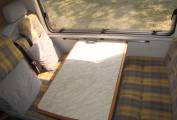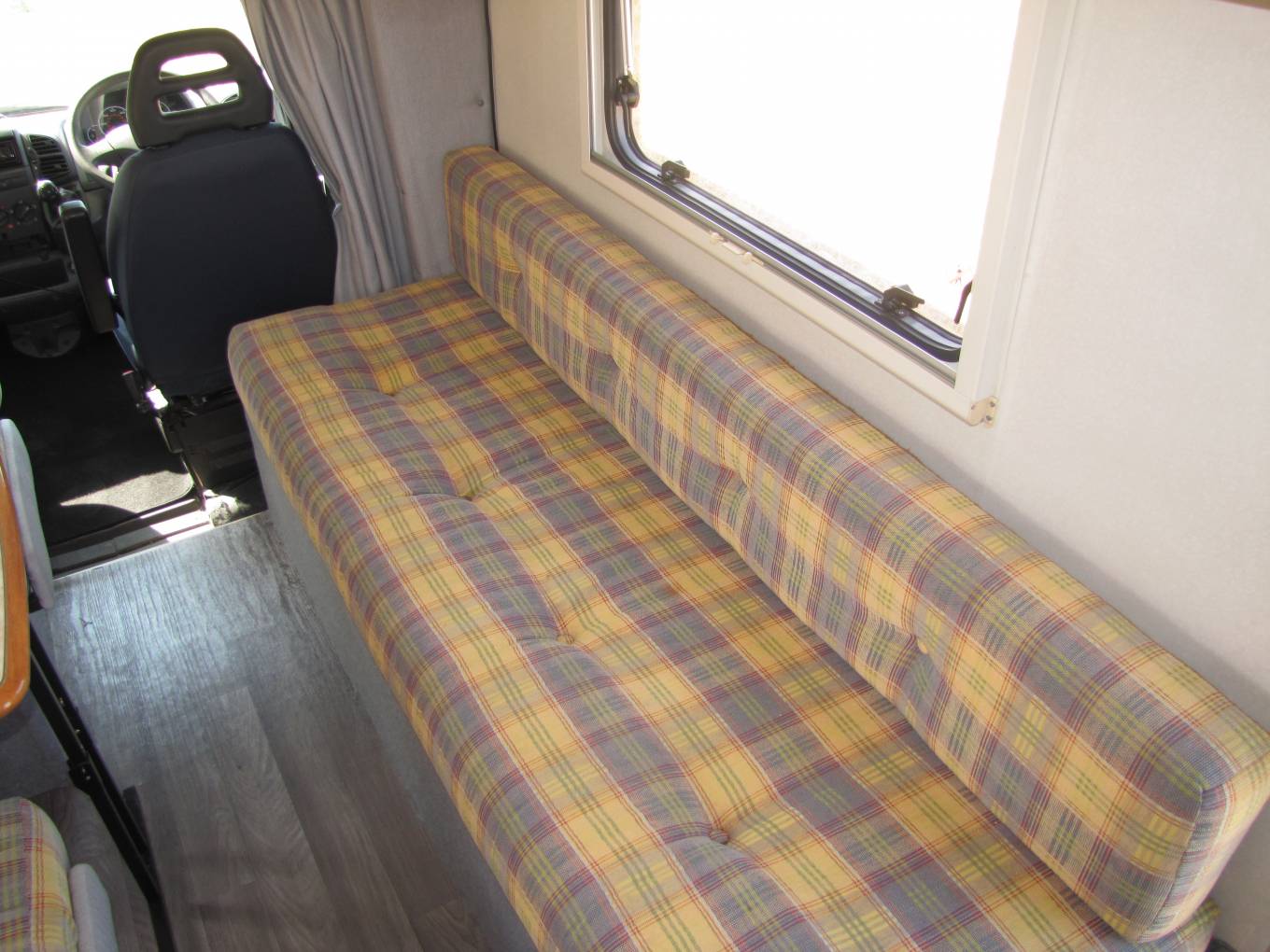 Upon entering the habitation, you have the layout of a central lounge and dining area with removable table to convert to a double bed as well as a long bench seat which converts to single bed or you can make up to a exceptionally large transverse double bed. You have the large double over cab bed with window, curtain and night light.