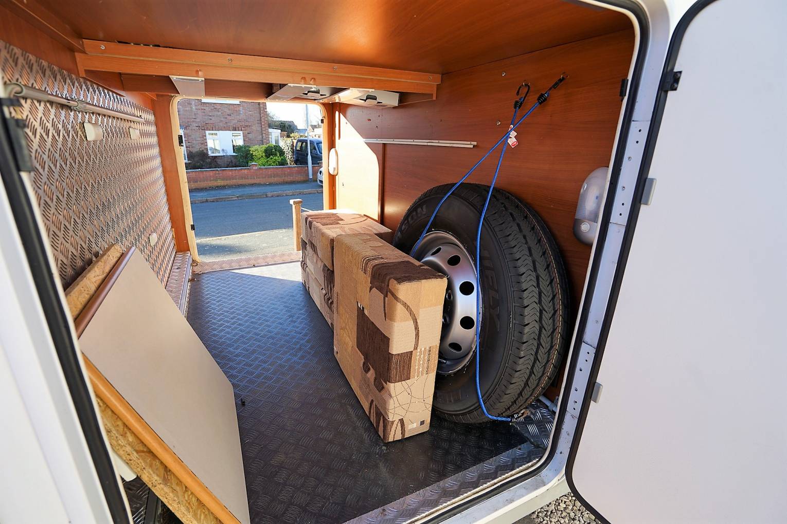 Garage with large doors either side. Access to Boiler and Spare wheel. Tow Bar,
