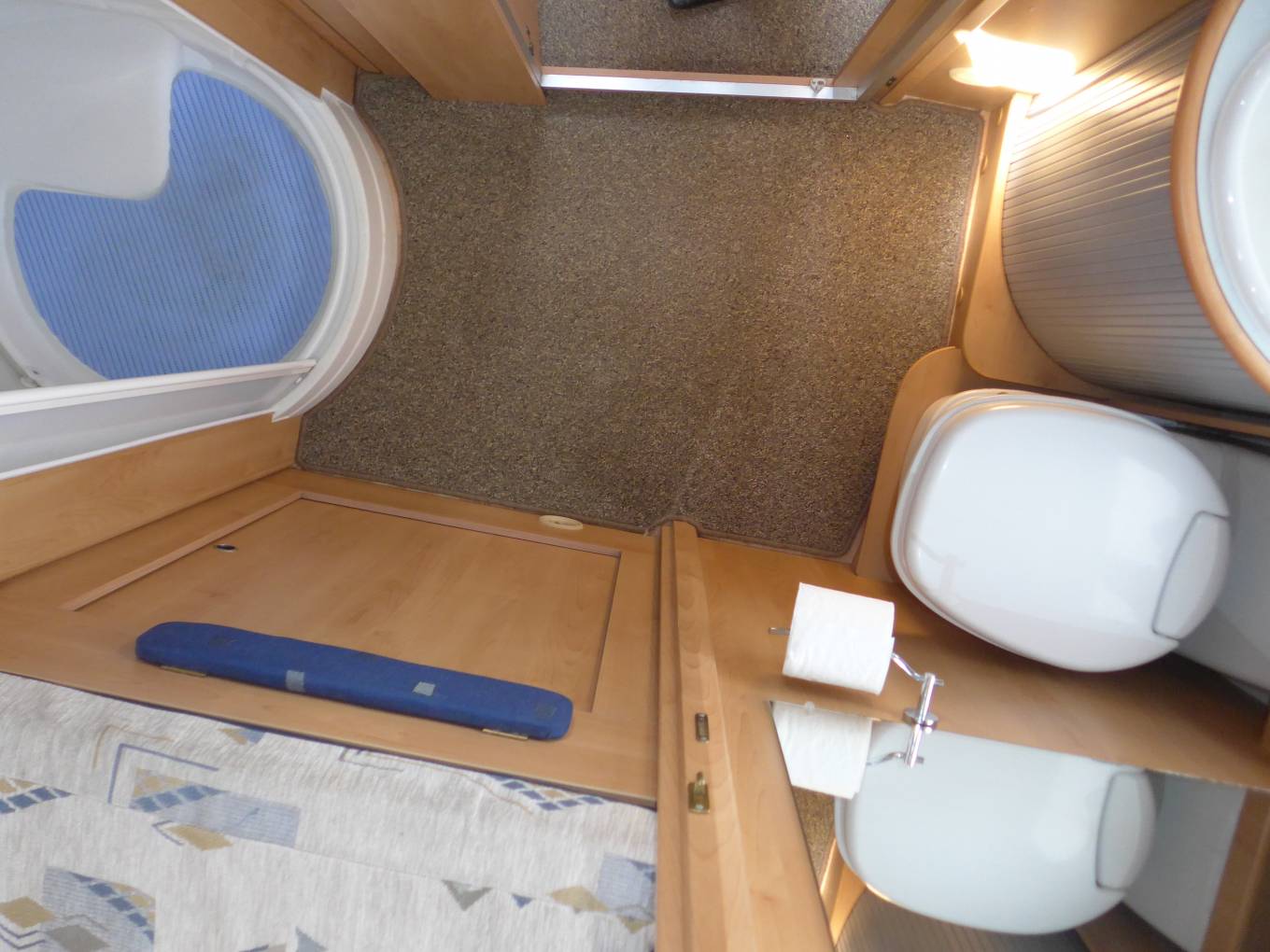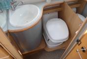 Seprate shower unit with rotating shower door. Cloakroom with Thetford cassette toilet and Vanity unit with integrated washbasin. Unique Cloakroom door and wall partition that swings out to provide an en-suite bedroom. Alternatively you can have a separate shower and cloakroom arrangement to suit.