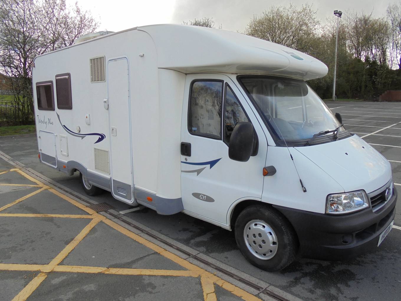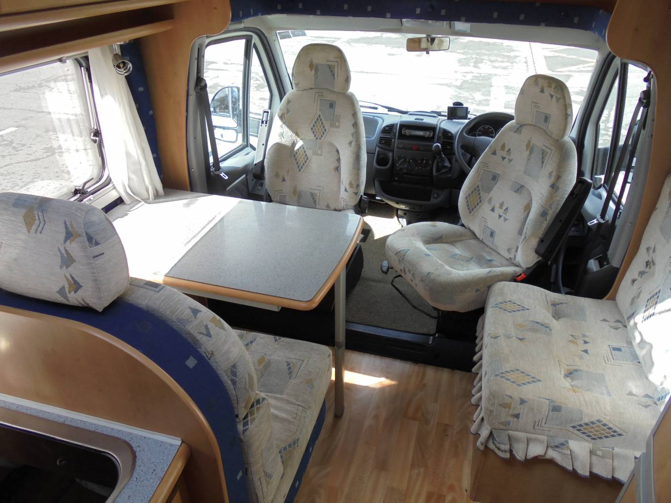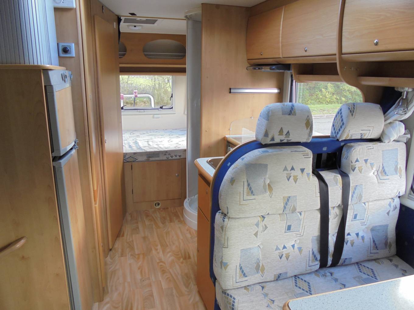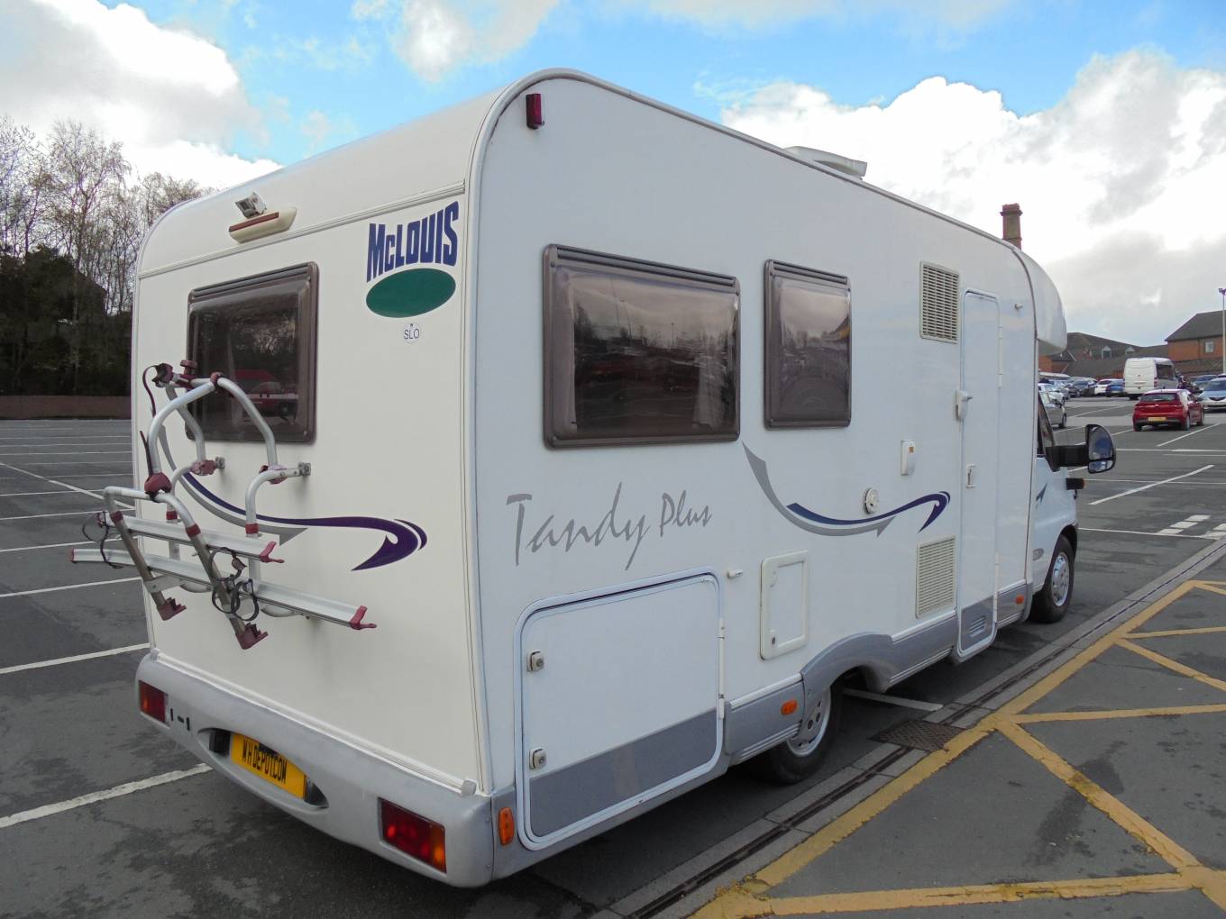 Mclouis Tandy Plus 671, low profile, 4 berth with fixed rear bed. This motorhome is 22 feet long, based on the Fiat Ducato with 2.8 engine and gross vehicle weight of 3,400kg. It has been well maintained with MOT till April 2020, hab check, good service history, new cam belt April 2019 and just 32,882 miles on the clock. The layout comprises a transverse fixed rear bed, under which is a garage for storage with 2 access doors, in the centre is the bathroom with separate shower plus the kitchen area. At the front is the longe and dinning area with 2 captains seats. It comes with 4 seat belts, alarm, blown heating, rear camera, bike rack and 2 sets of keys. It also comes with gas bottle, mains lead and is ready to go. Part exchange, finance and warranties available, call for more photos and information.