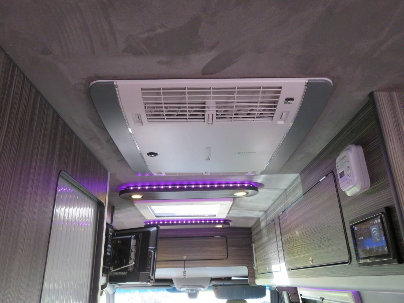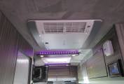 Chequer plate on the floor, Walls in white. Side Securing rails. LED Lighting.