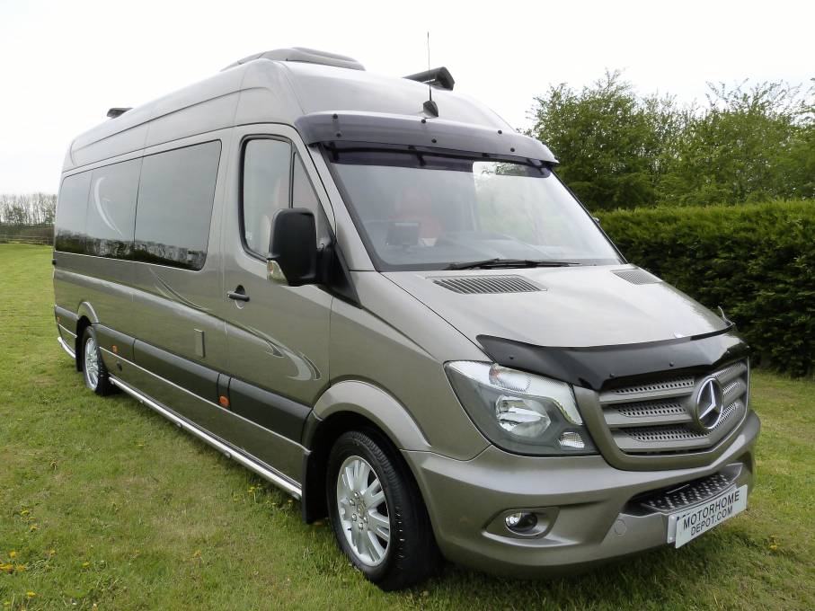 Call with any questions on 01423 609985. This 4 berth, 2014, Mercedes Benz, Sprinter 313 Cdi conversion, is stunning, inside and out. It is distinctive in colour and really looks the part with the grey bodywork, decals, metal running bars and weight bearing Mercedes wheels. Registered as a motorcaravan on the V5, it is packed with extras, to allow for full off grid or “wild” camping. The more comprehensive full specification is listed below. The base level includes, leather upholstery throughout, rear lounge, 2 x swivel seats up front, galley kitchen, toilet and sink, 2nd sofa and a drive away awning, is also included. It has travelled only 28,799 miles and has MOT to Oct 2023. The more detailed specification includes.