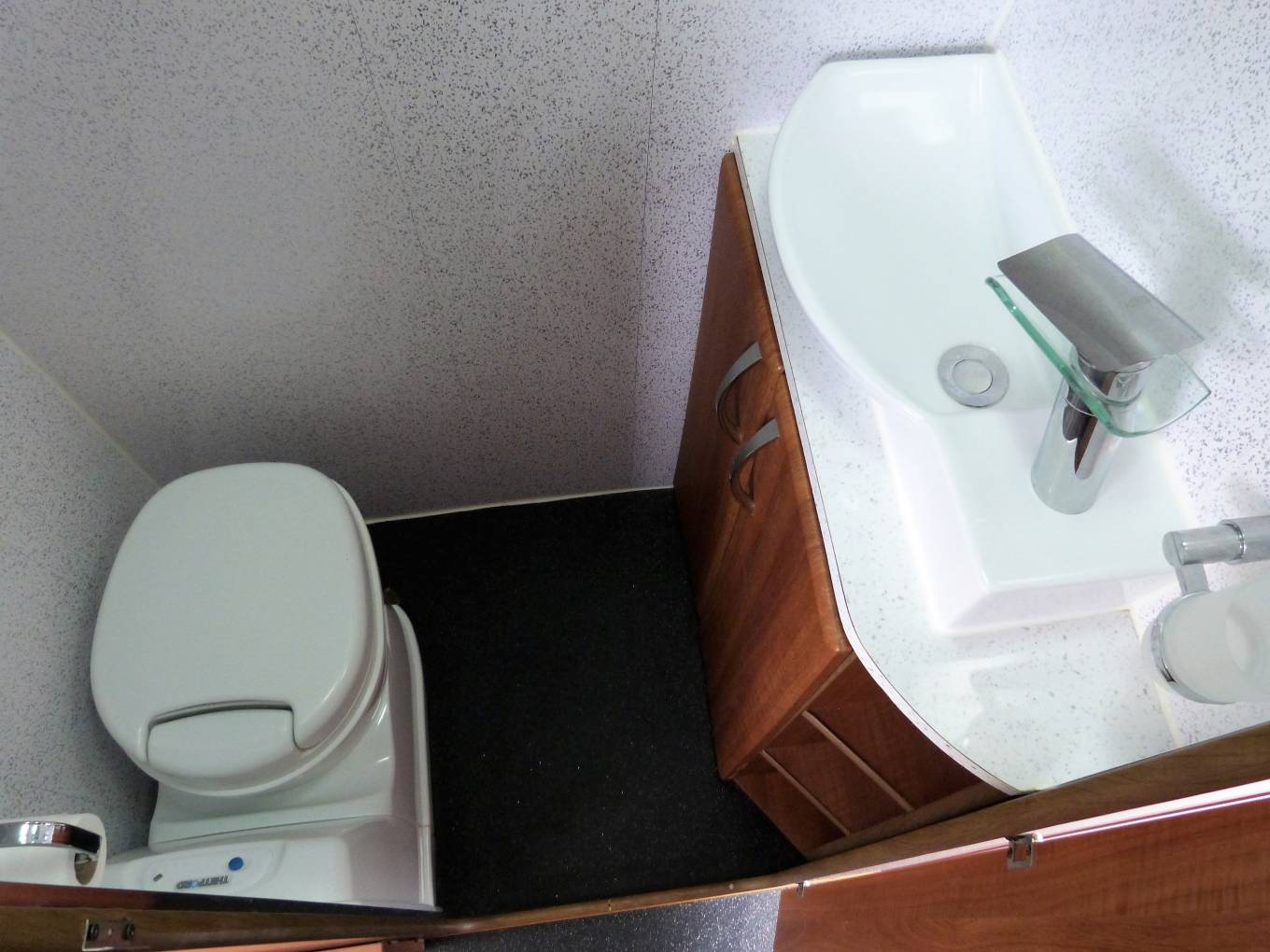 to be a bed as does the sofa at the front. The washroom has toilet and sink;