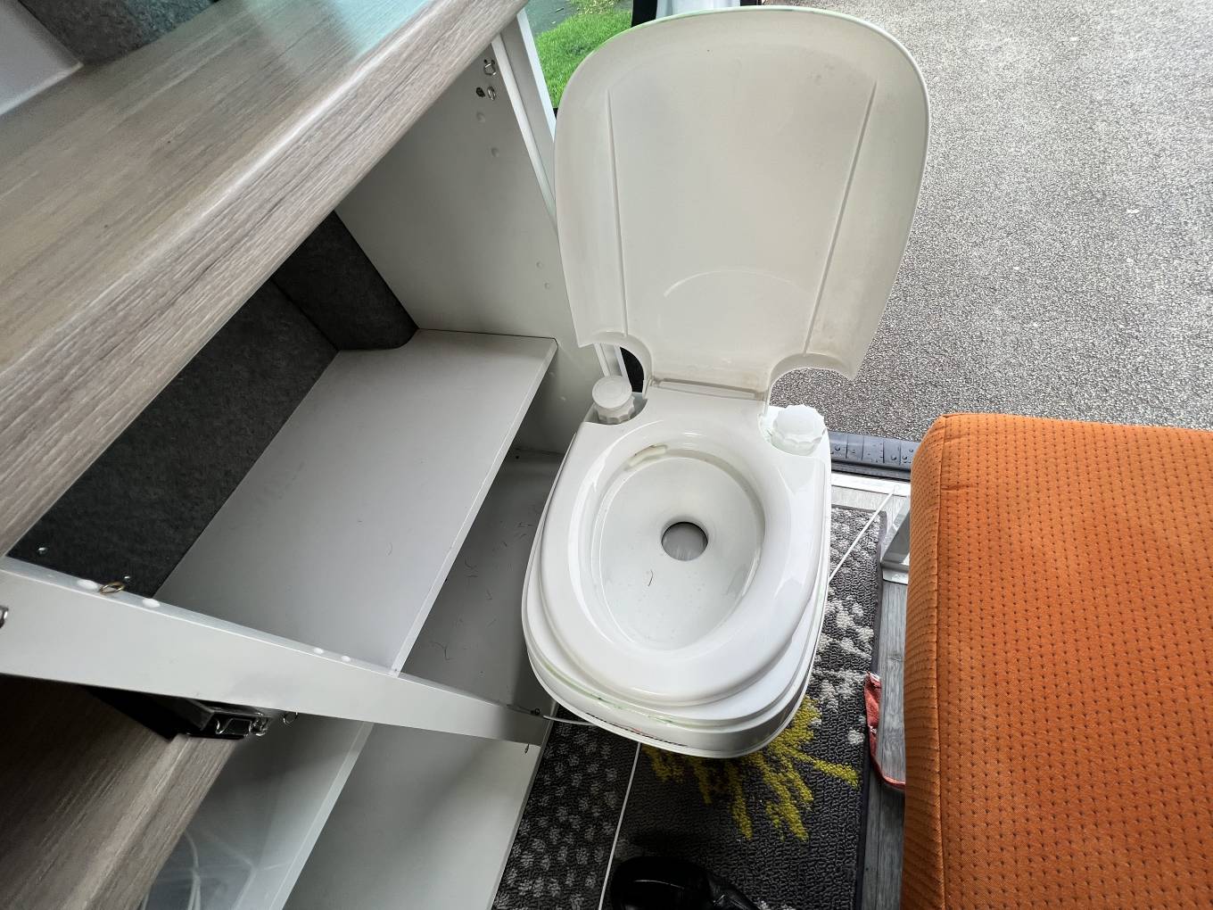 In a single movement the rear seat converts into a 6ft 3in x 2ft single bed an Porta Potti toilet can still be used.