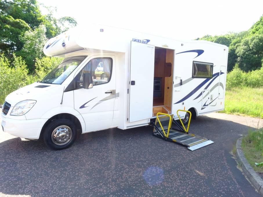 We are pleased to offer for sale this Mercedes Sprinter Hampton EH08 2 berth A Class wheelchair accessible coachbuilt motorhome with electric wheel chair ramp.