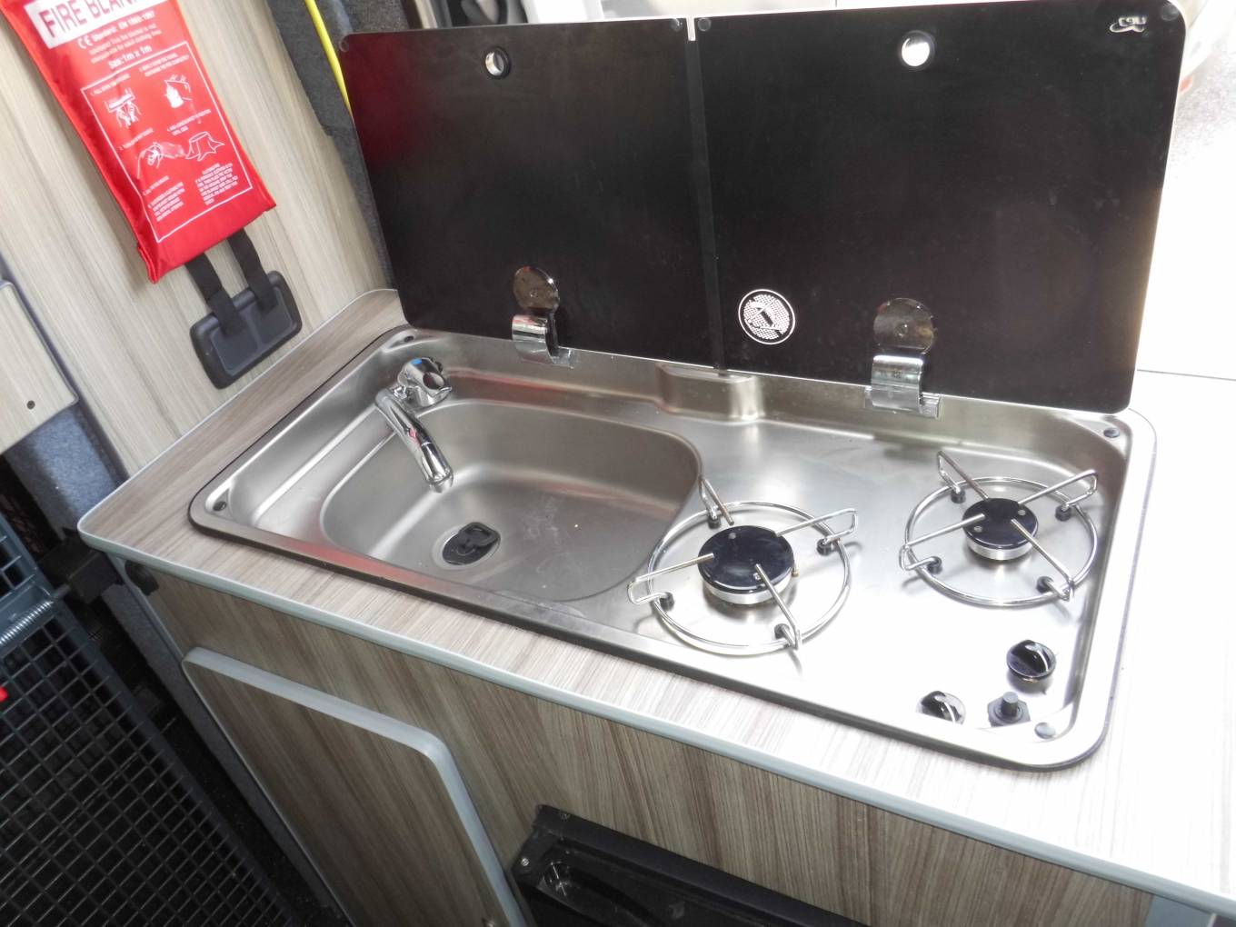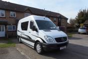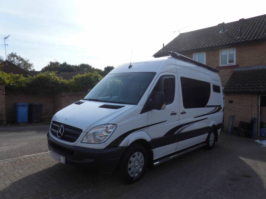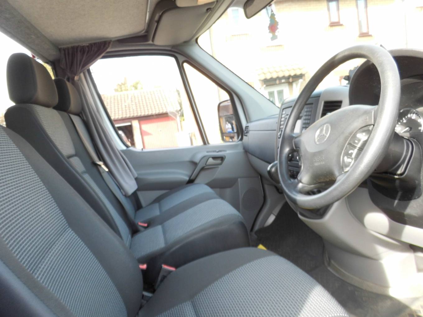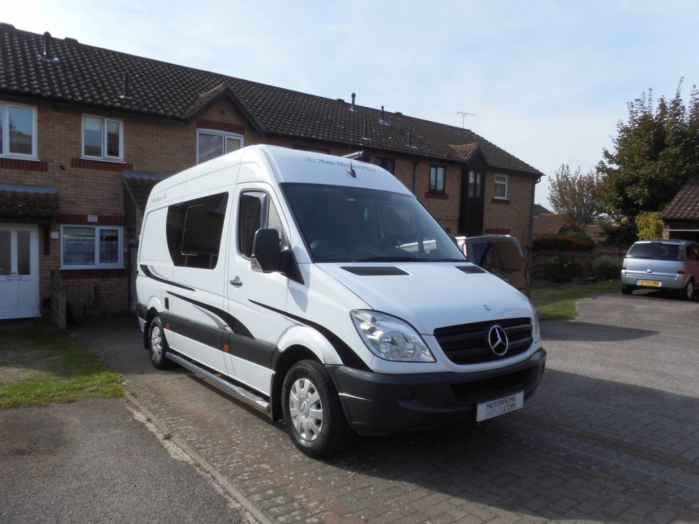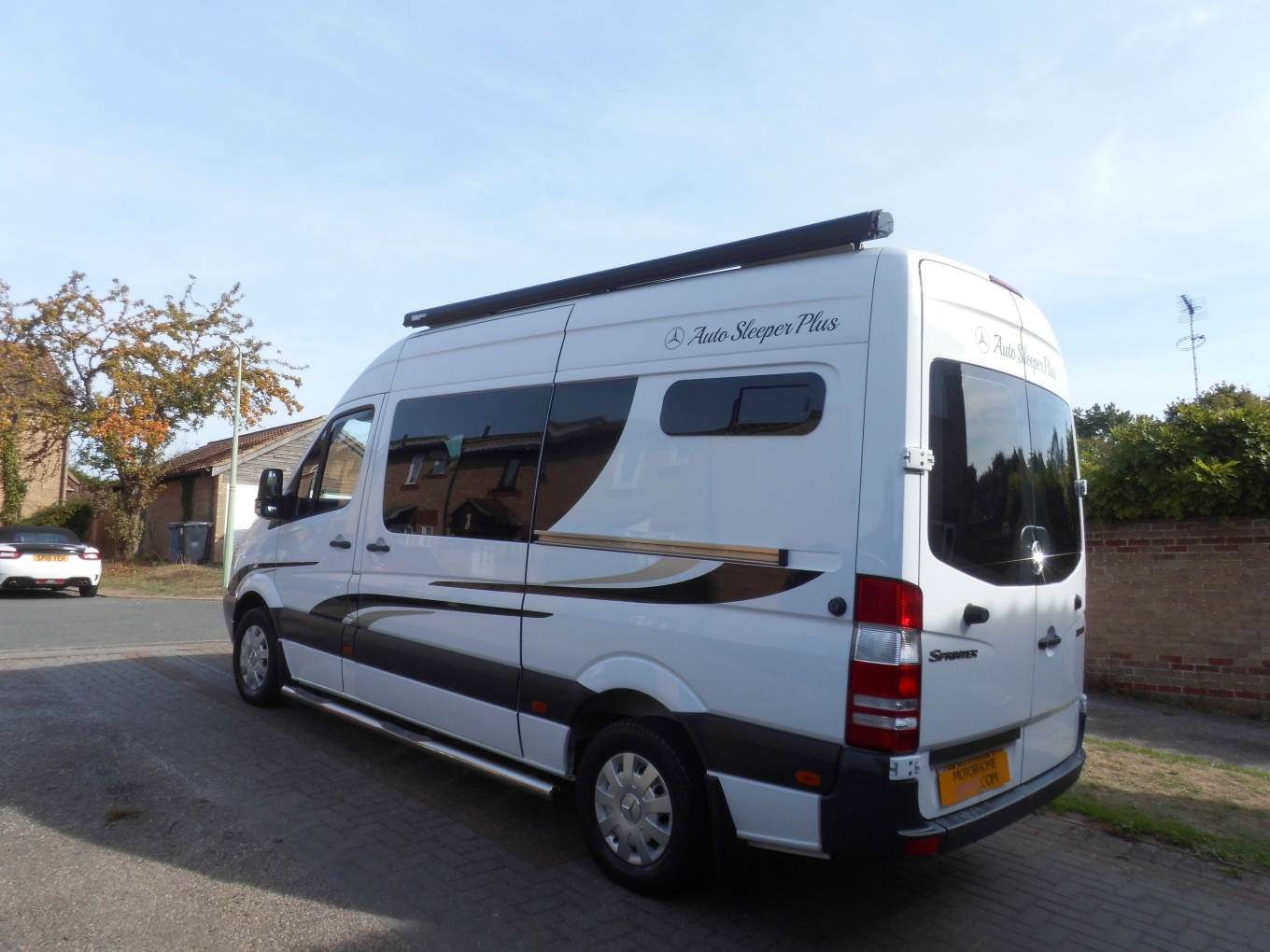 Very Nice conversion on a Mercedes sprinter 313CDI WITH LOW MILES OF 66,700 very good service history recent Mot with no advisories. Spacious campervan ideal for many different uses, great for the weekend sports enthusiast, with a rear fixed bed and large garage space under, large enough for motor x, go karting etc. 3 berth with 4 belted seats, both front bench seat and drivers seats swivel. dining area with single rock n roll bed. Kitchen area opposite that provides, sink, hob and microwave. Full insulated throughout with cab air conditioning and habitation air conditioning unit, great for those continental journeys . Side awning, under bed storage has been fitted with dog cages these can either be removed or left in place, for the new owner. Full electrics with 3 pin plugs as well as usb.