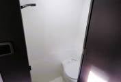 The layout features a large rear fixed bed with storage under and rear garage space, with LED lighting throughout. Home from home comfort with a built in washroom with flushing toilet and overhead shower to provide all you need if off site, as onboard facilities make for a pleasurable camping experience wherever you may pitch up. Cooking facilities are fully catered for with a Thetford 3 burner hob with oven and grill under. A sink with hot and cold running water sits to the side. Opposite the kitchen is a 2 person sofa with removable table for dining, working or playing games and there is a TV/DVD fitted for further entertainment choice.
