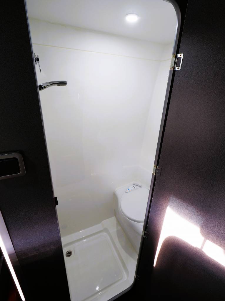 Hot water and cooking is powered by gas with an LPG underslung tank fitted so no need to faff around with exchanging canisters and ideal for European travel. Heating comes from the separate diesel heater and electric power is either via 230V electric hook-up or the 12V system powered by twin leisure batteries and roof mounted solar panel with MPPT split charger.
