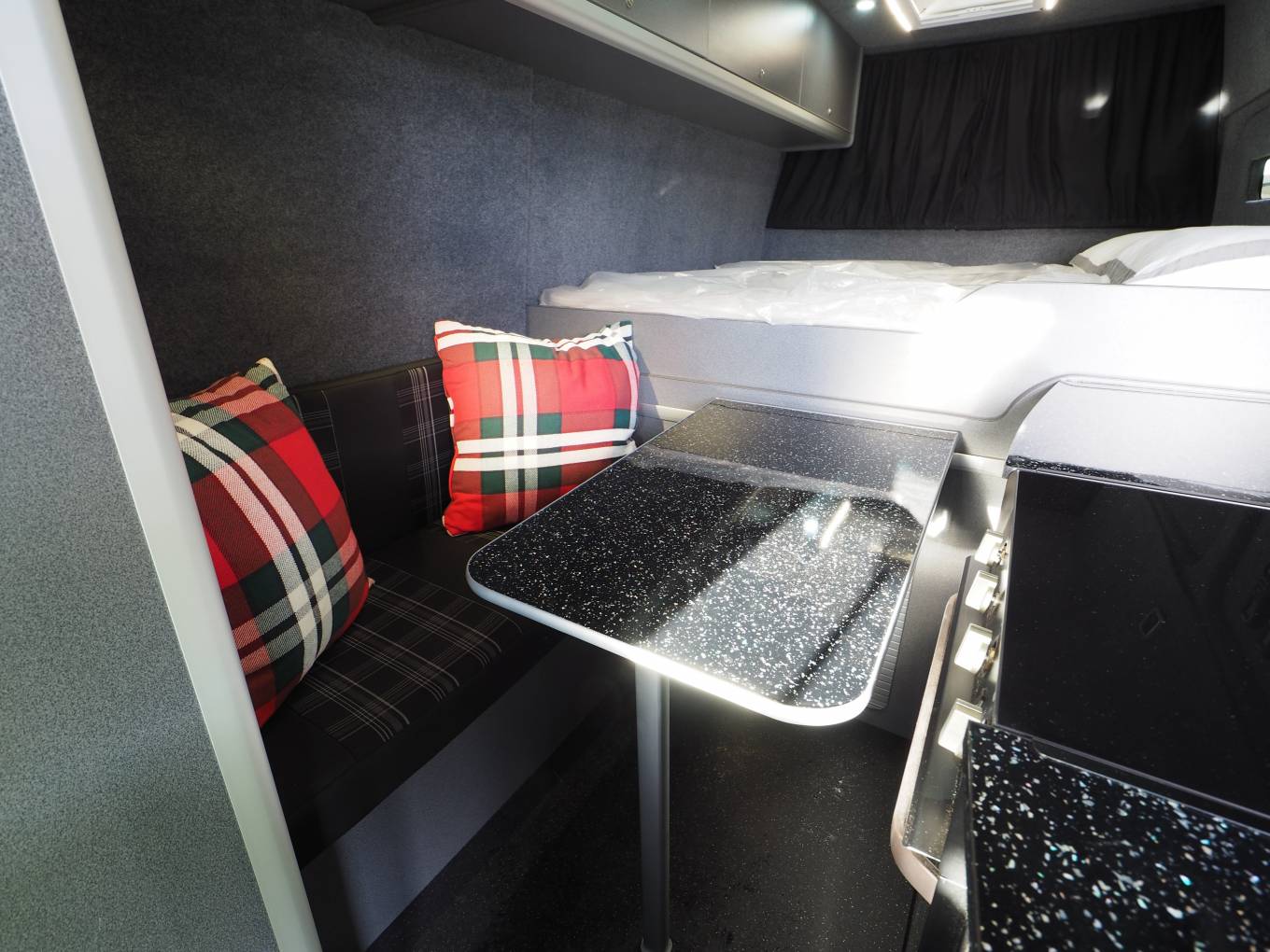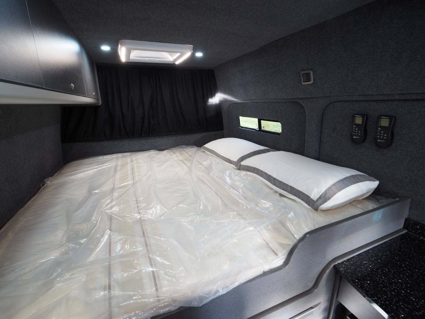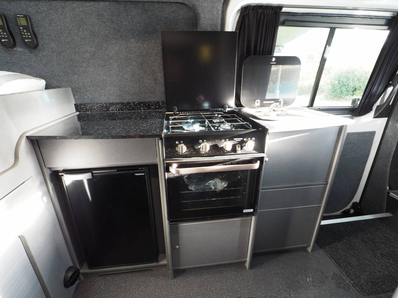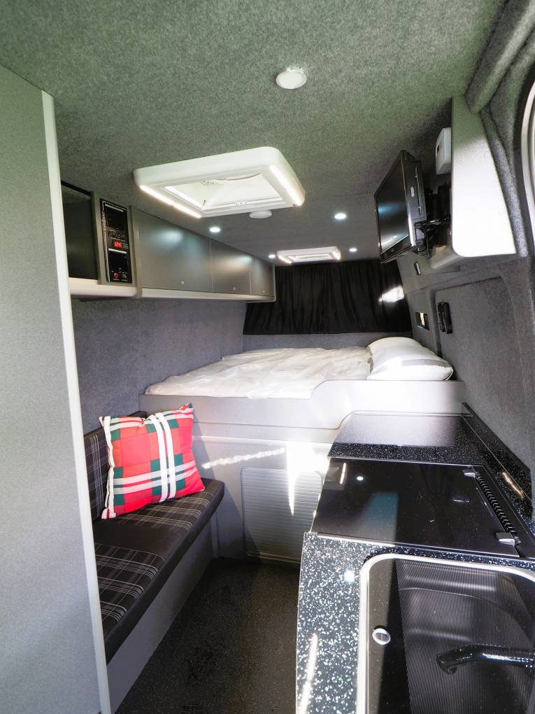 This is a quality conversion and is well specified including twin remote control fan vents that can be set separately to provide fresh air circulation as well as ensuring if cooking inside the van any food smells are quickly eradicated.