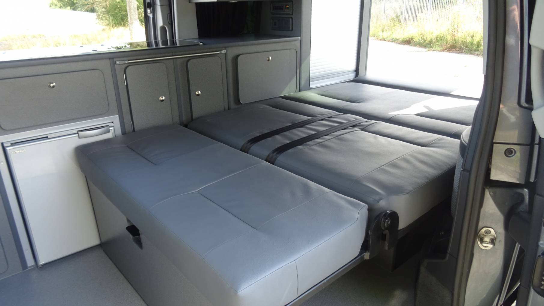 For Sale - A top quality Mercedes-Benz Viano Automatic CDI 2.2L Diesel left hand drive Campervan, which has been converted with the best materials and craftmanship you would expect from the renowned Plymouth based SC Conversions. The pop-up roof provides a large double bed and benefits from having a memory foam matress fitted. The rock n roll bed completes the remaining berths with a great size double bed when deployed, and also has two passenger seatbelts when in the seating position. We have a Dometic Cali style 2 burner hob and sink with a glass lid and a quality 12v Vitrifrigo fridge with a dining table which fits on a rail. The seat and bed system are M1 tested for your safety and the Viano is fitted with privacy windows and curtains. You will find loads of cupboard and under seat storage including a neat roller shutter wardrobe. The diesel heating will keep you nice and warm on colder days and the Sargent power management system includes 240v and 12v sockets and a leisure battery with a split charging unit. Externally, the Viano has two sliding side doors and a 240v hook-up point, and with led interior lighting, a cab with air-con, bluetooth, automatic gearbox, electric windows and mirrors, radio/cd player and driver/passenger airbags, this is a high specification campervan with the respected Mercedes build quality and reliability.