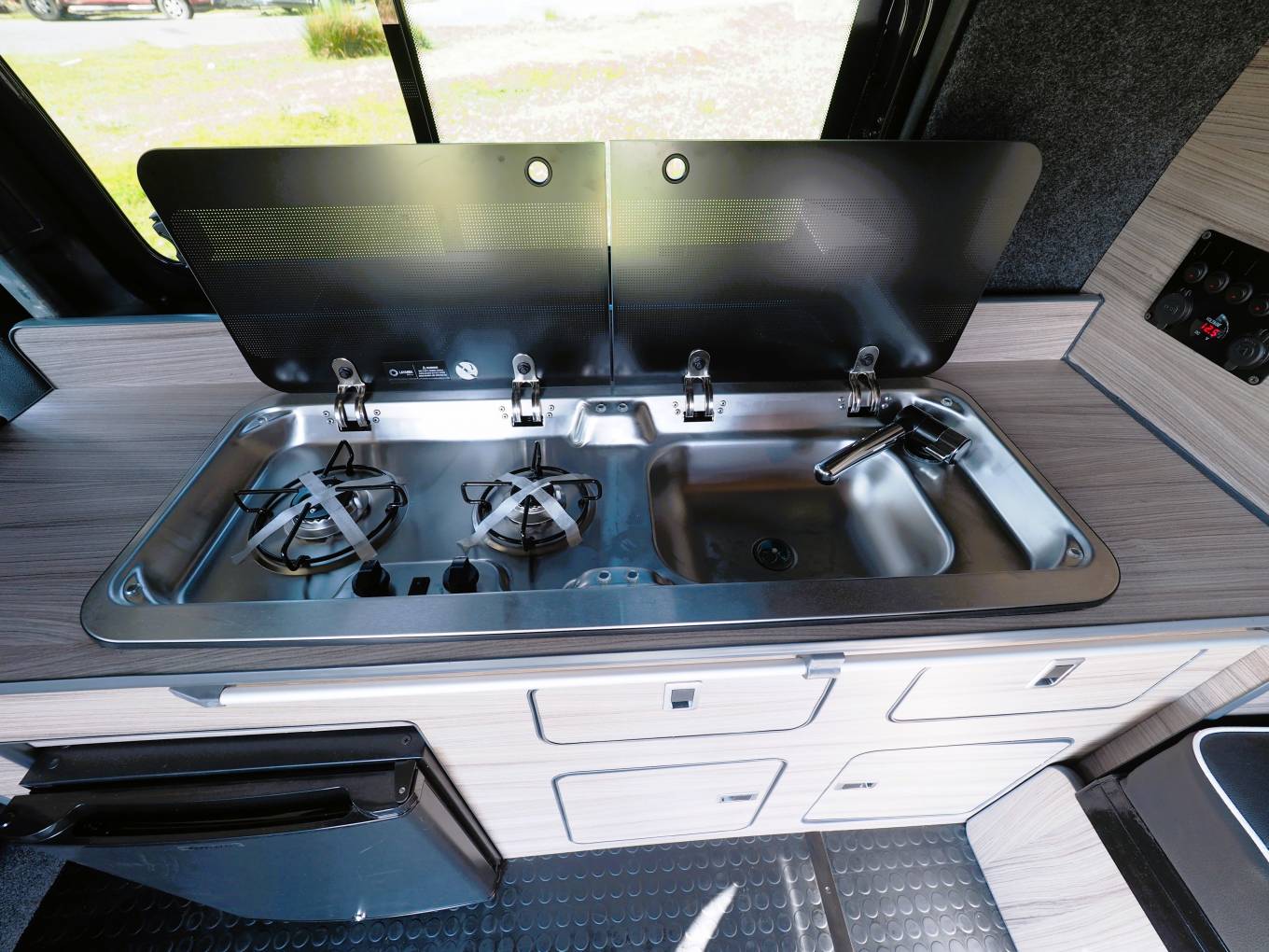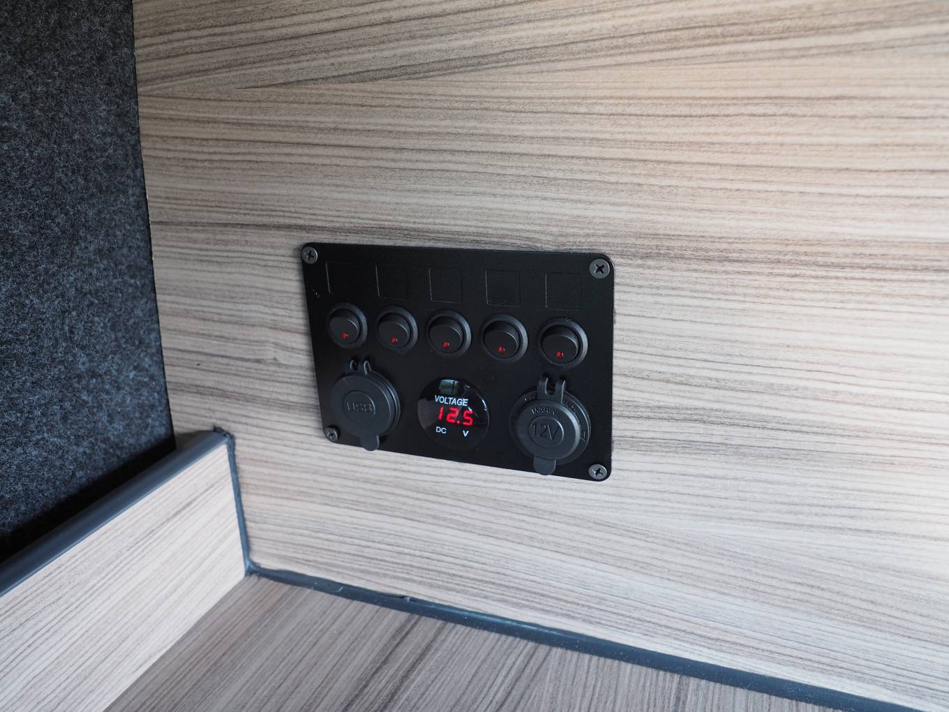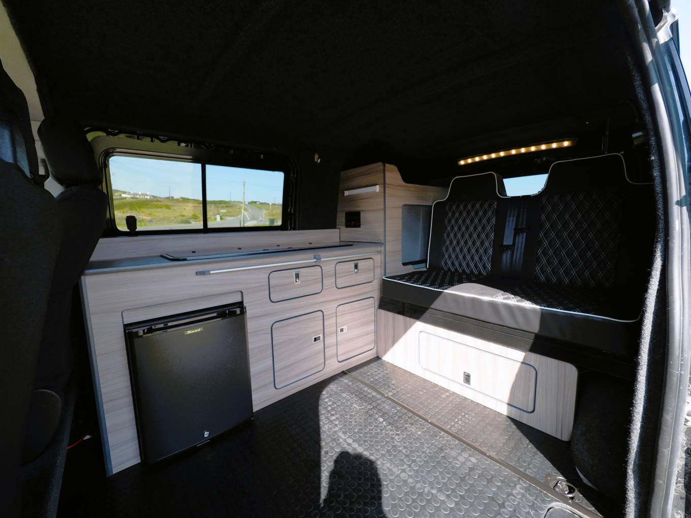 Fitted out with a 2 hob gas burner and sink, fridge and rock and roll bed. There is also plenty of onboard storage to carry all you need on any adventures. Clean and grey water canisters included, a 12v system with leisure battery and split charger. There is plenty of spare fuse switches on the main circuit board and 2 spare switches on the control panel for further customisation.