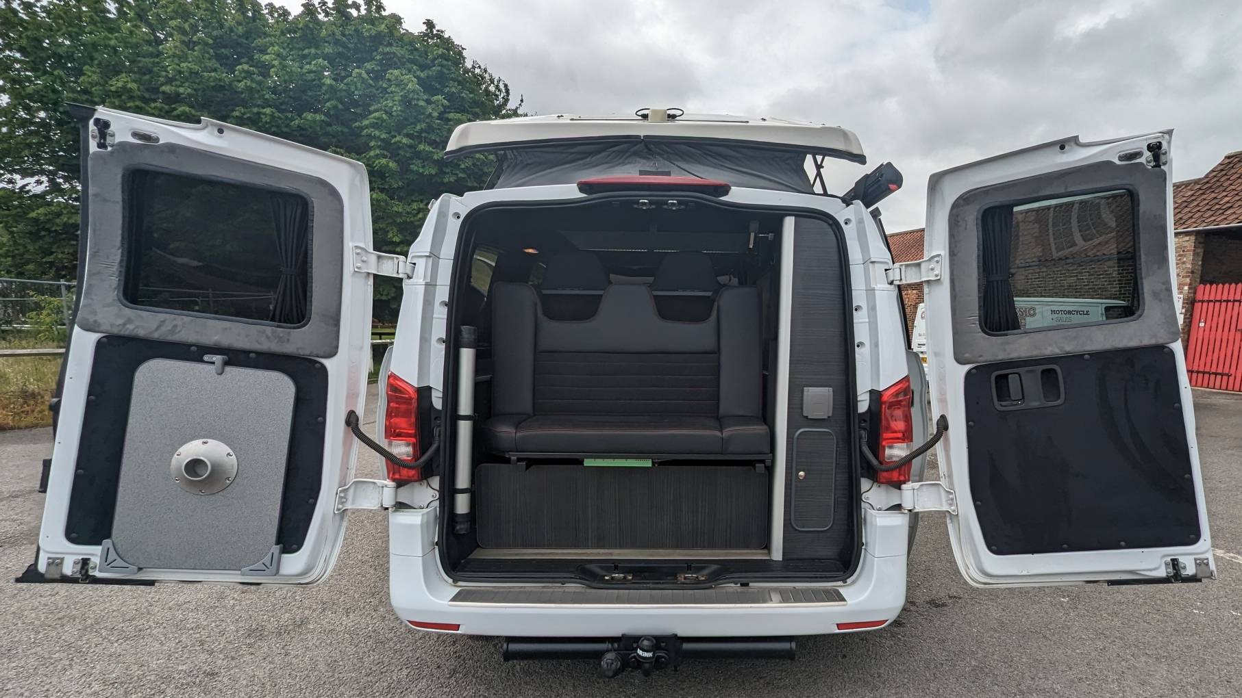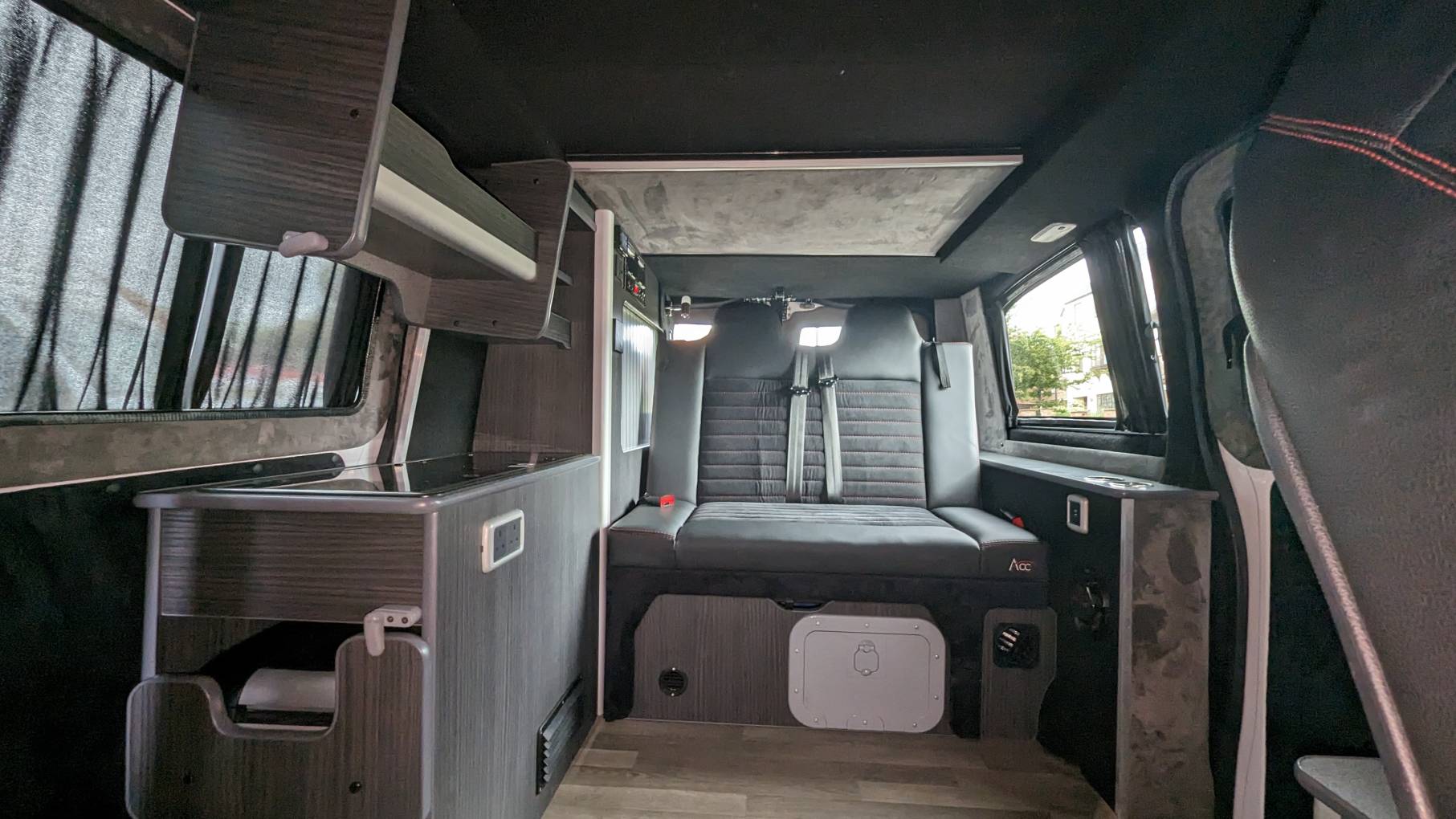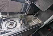 The 19-inch alloy wheels not only add style but also ensure a smooth ride. The poptop roof comfortably sleeps two adults, and the rock and roll bed, measuring 1.3m wide, guarantees a restful night's sleep. Safety is paramount with rear seat belts, and the all-around LED lighting and USB ports add a touch of modernity to your camper van experience.