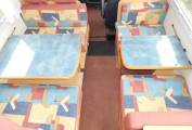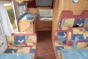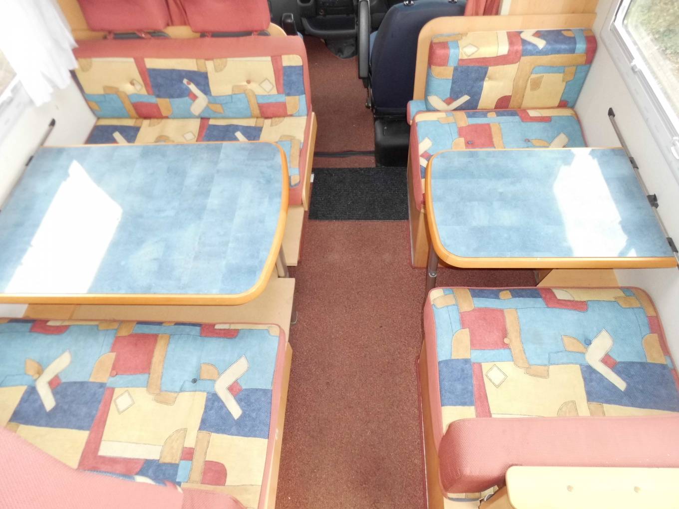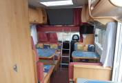 The main living area is extremely spacious and features a twin dinette layout. On the near side you have forward and rear facing sofas with a large dining table which attaches to the side rail. This can be removed and stored in the rear garage if you want a more traditional lounge layout. On the offside is another smaller dinette and once again the table can also be removed. Above the cab the large double bed provides a great night's sleep or alternatively it can be used as an extra storage area.